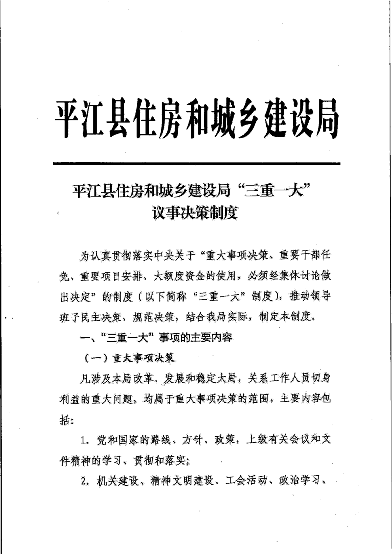 平江县住房和城乡建设局“三重一大”议事决策制度