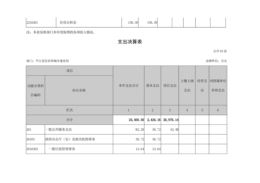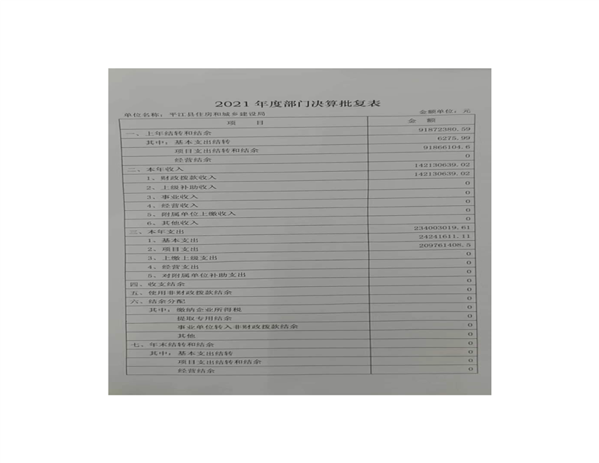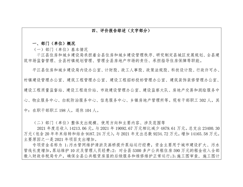 2021年度平江县住房和城乡建设局部门决算