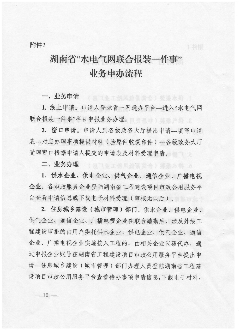 关于印发《湖南省“水电气网联合报装一件事”工作实施方案》(湘建城〔2024〕64号 )