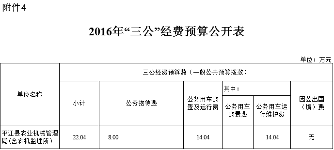 平江县农机局2016年三公经费预算公开表