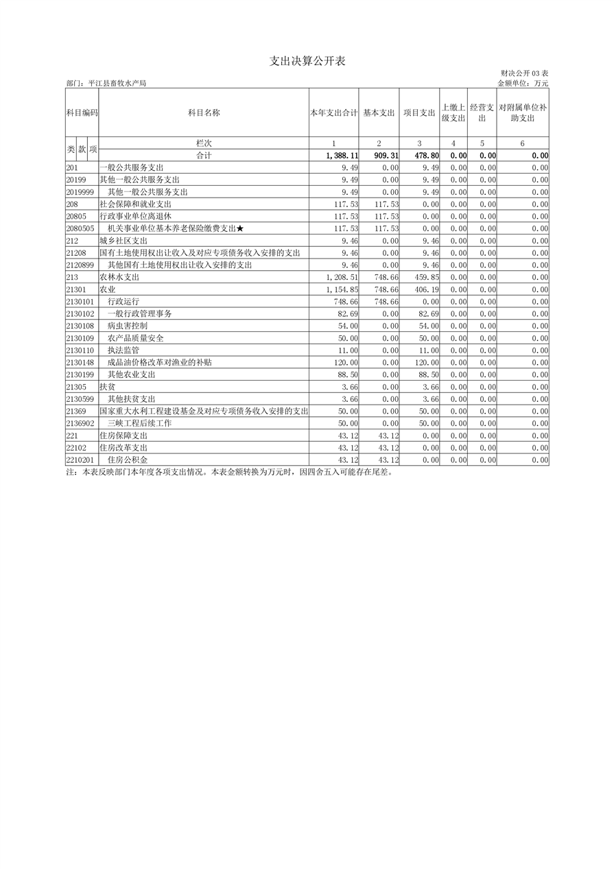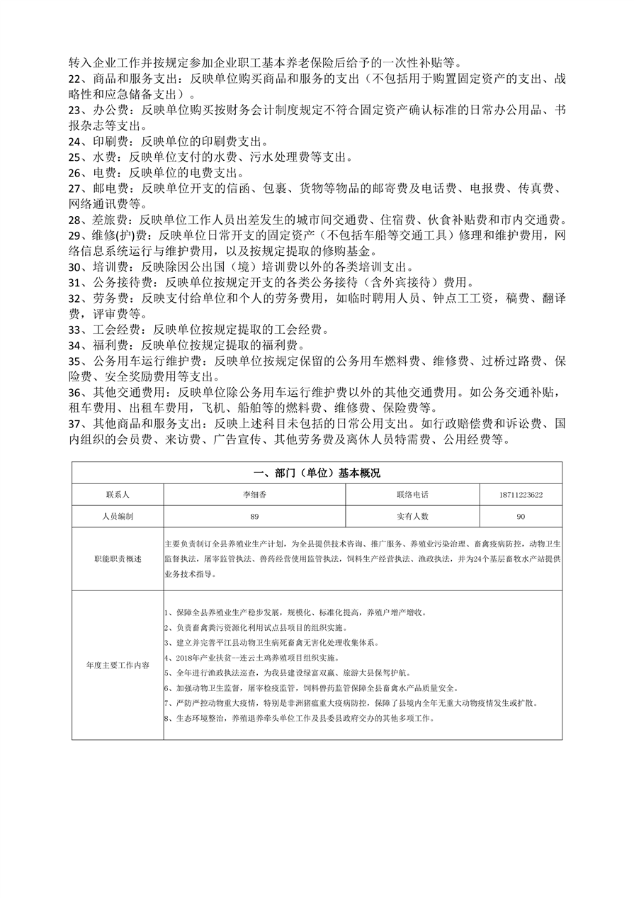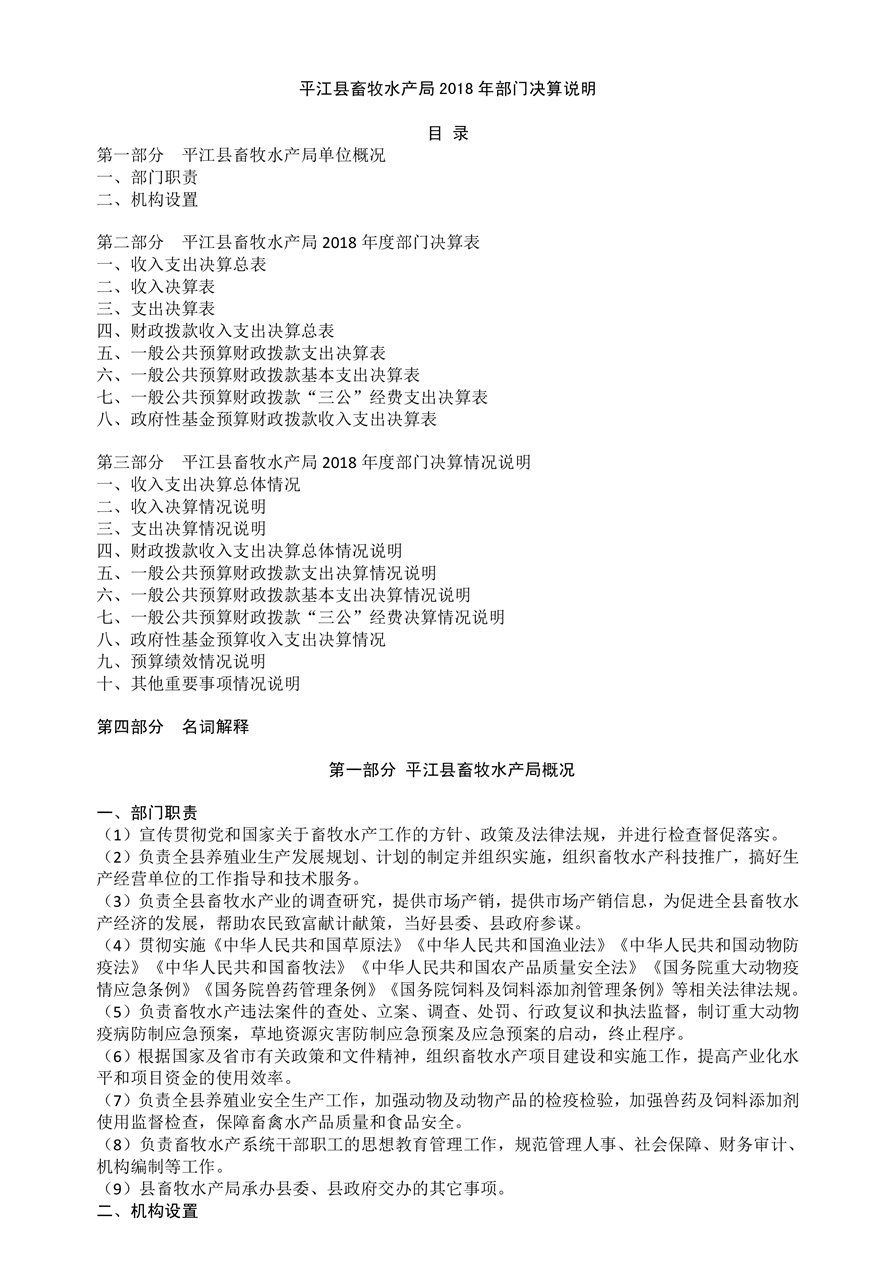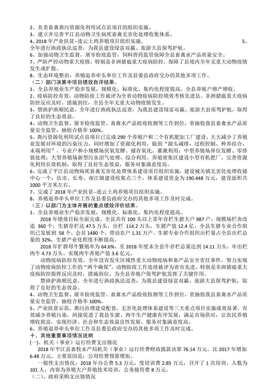 平江县畜牧水产局2018年部门决算编报说明