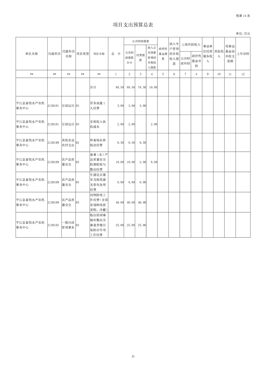 平江县畜牧水产农机事务中心2022年部门预算编报说明