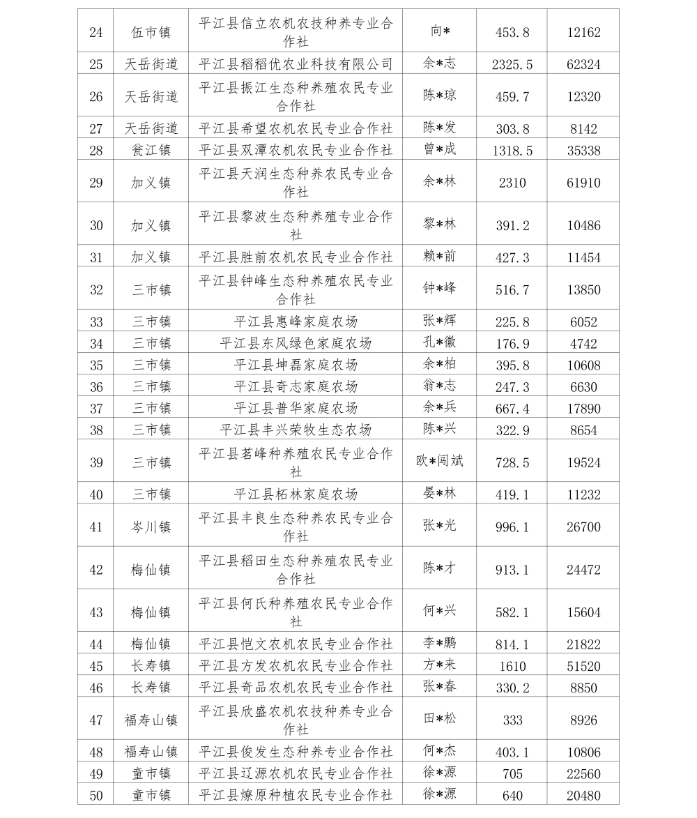 3、支持村级集体经济组织代耕代种服务197万元,服务面积共8.8万亩,补助标准24元/亩(见表3)。