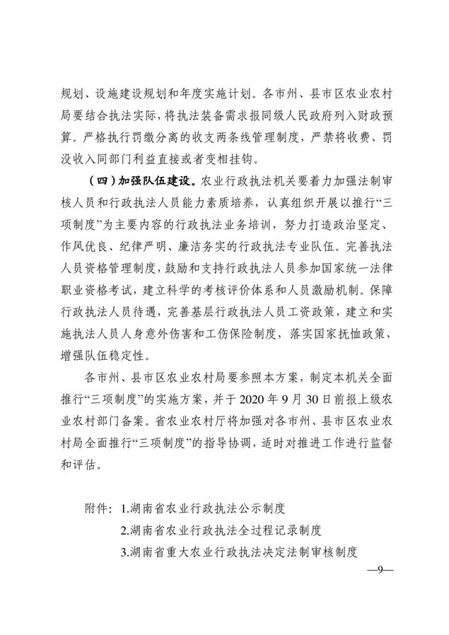湖南省农业农村厅印发全面推行行政执法公示制度执法全过程记录制度重大执法决定法制审核制度的实施方案
