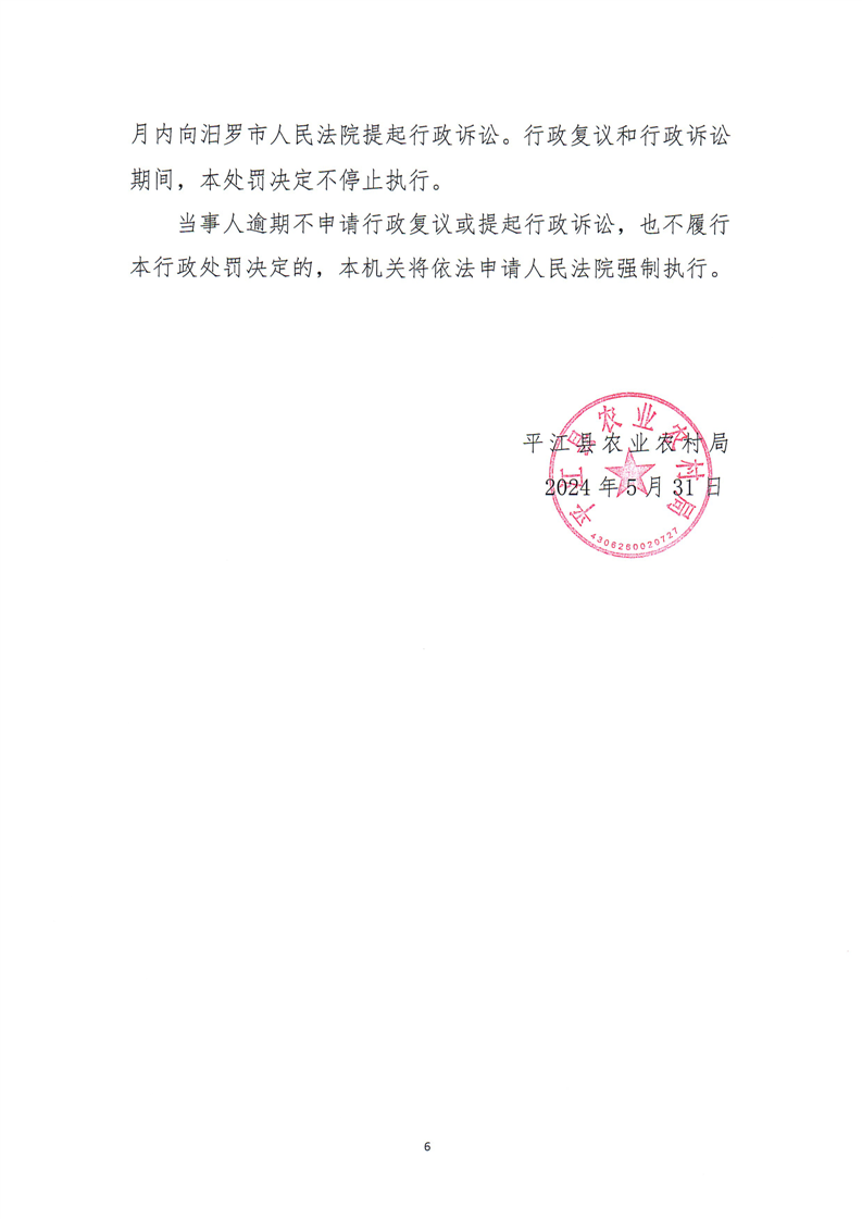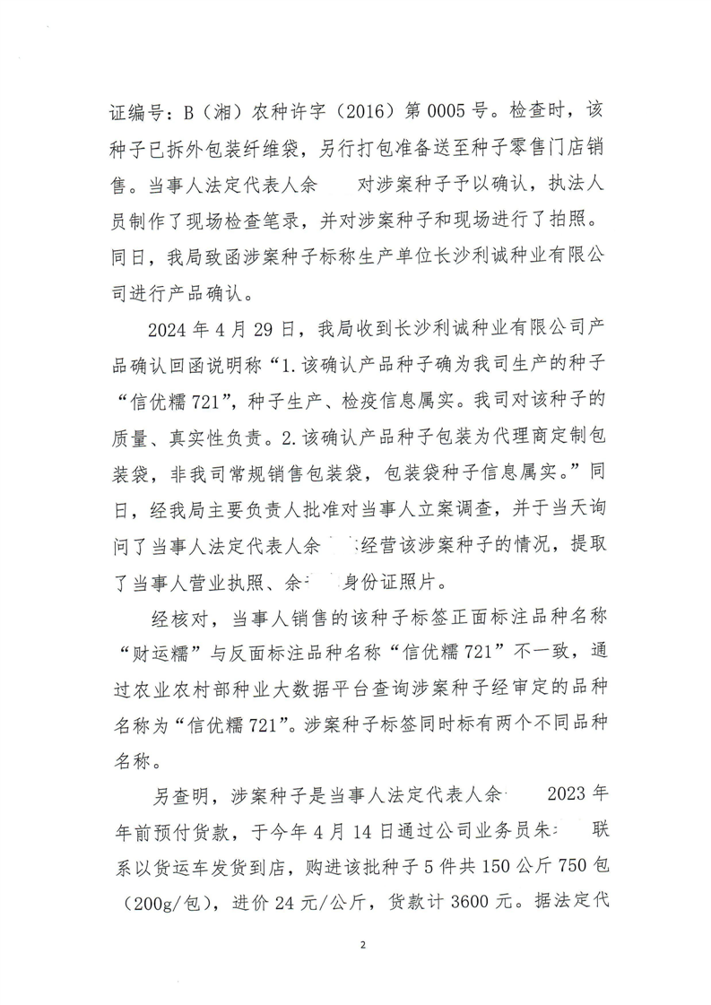 平江县农业农村局 行政处罚决定书 平农(种子)罚〔2024〕3号