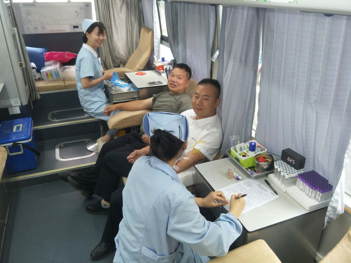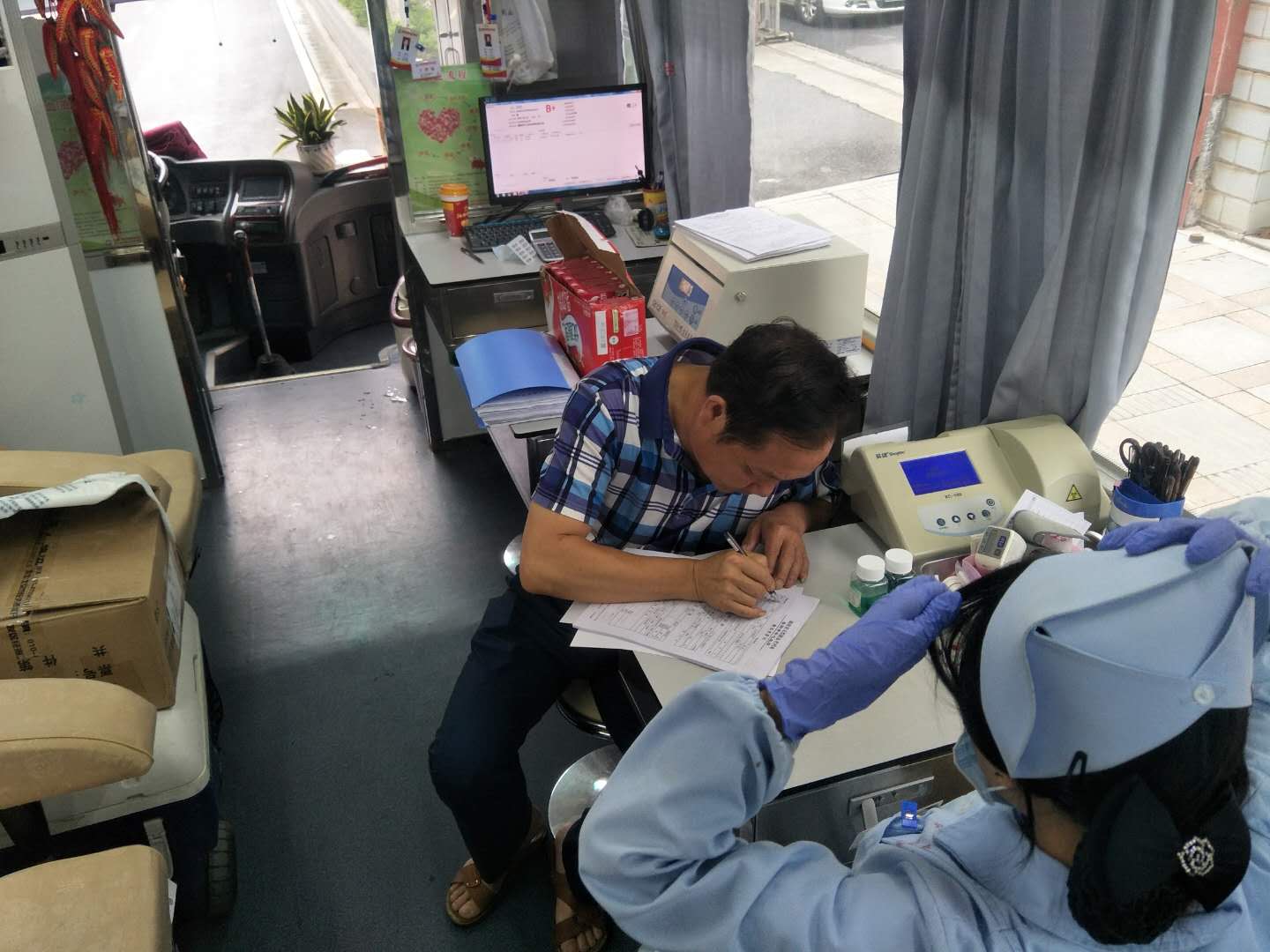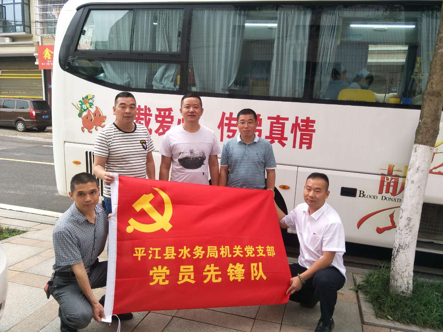 5月21日上午8点,一辆采血车停放在平江县水务局门口,开始了今年的无偿献血活动。