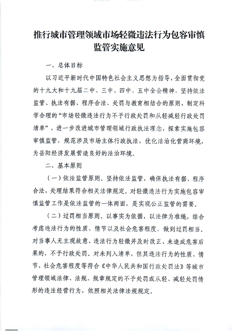 2023平江县城市管理和综合执法局关于转发岳阳市城市管理和综合执法局关于印发推行城市管理领域市场轻微违法行为包容审慎监管实施意见的通知