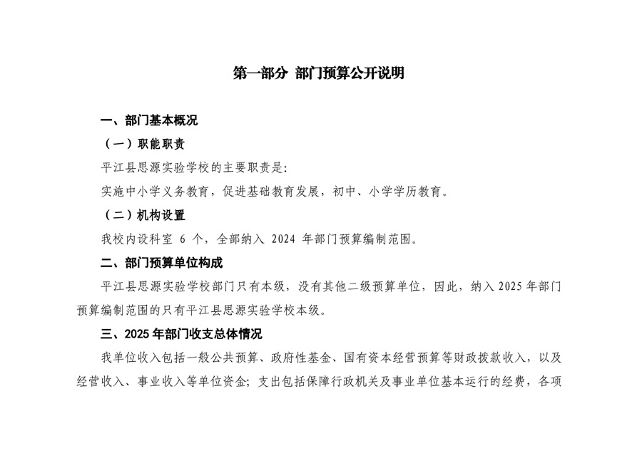 平江县思源实验学校2025年部门预算公开