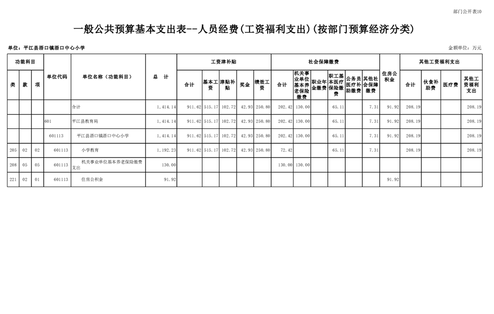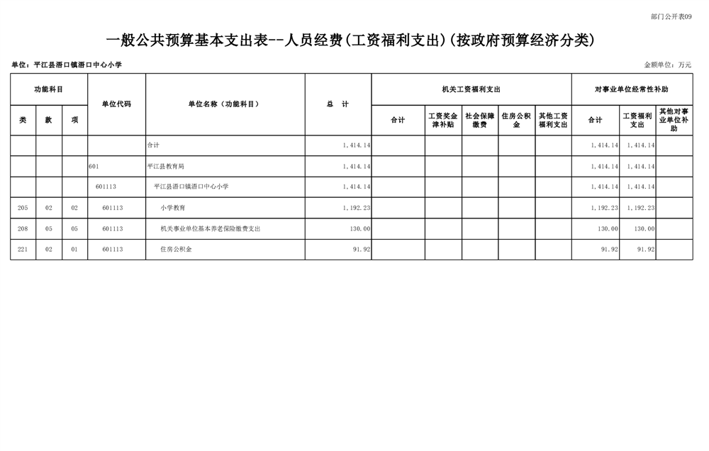 平江县浯口镇浯口中心小学2025年部门预算公开