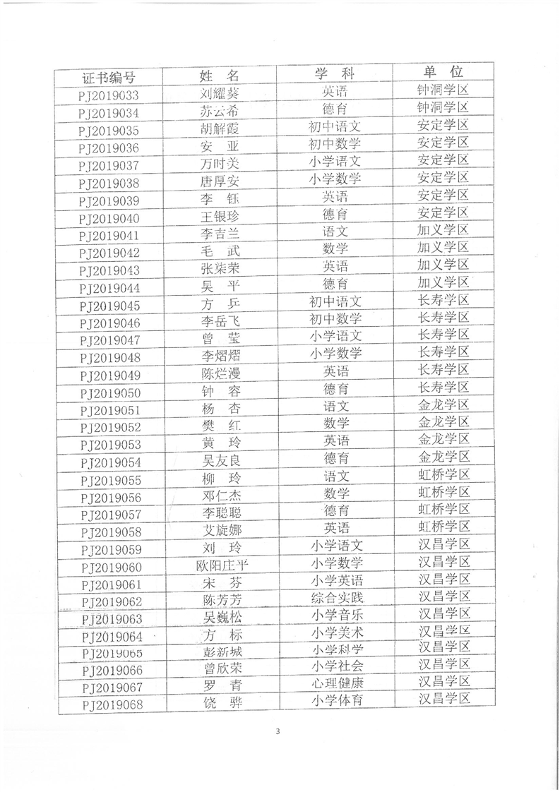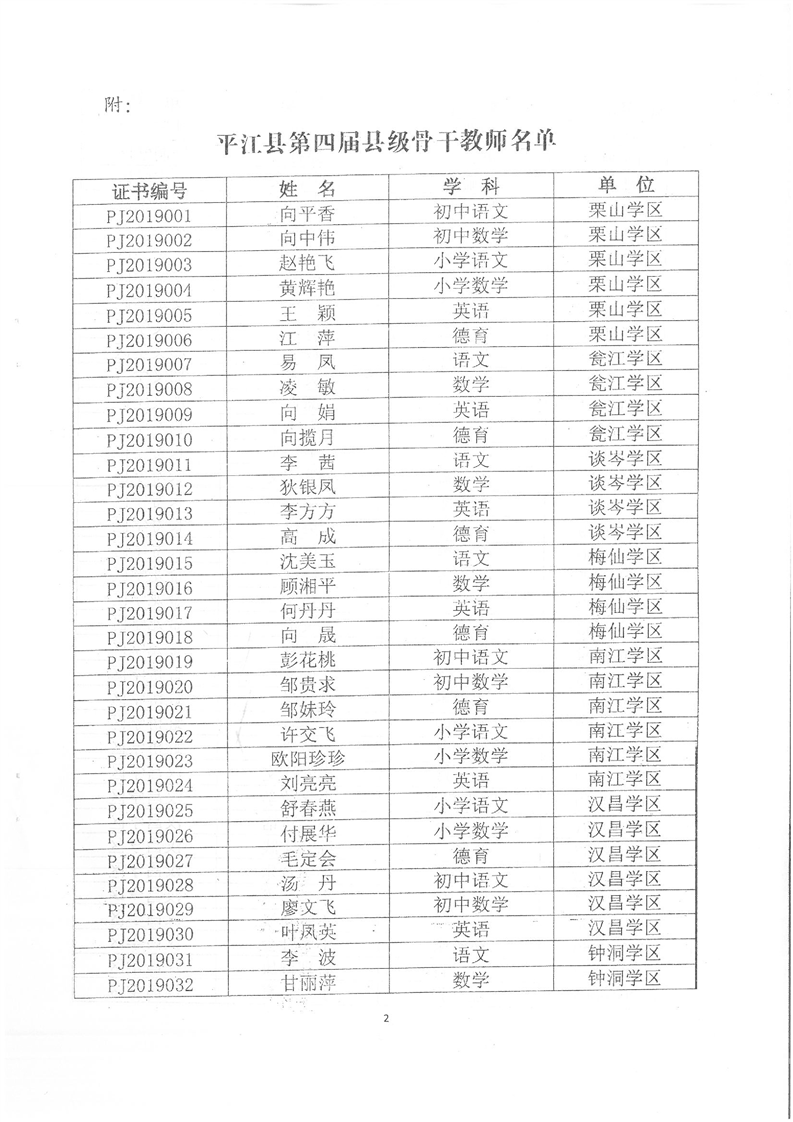 平江县教育体育局关于公布第四届县级骨干教师名单的通知