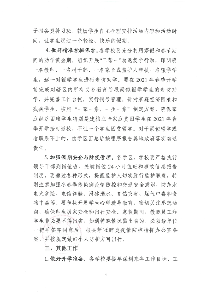 关于2020年全县中小学校、幼儿园放寒假的通知