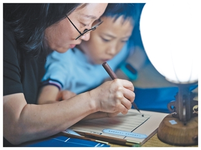 在南门“读者剧场”,游客写下自己心中的“岳阳楼记”。(覃 源摄)