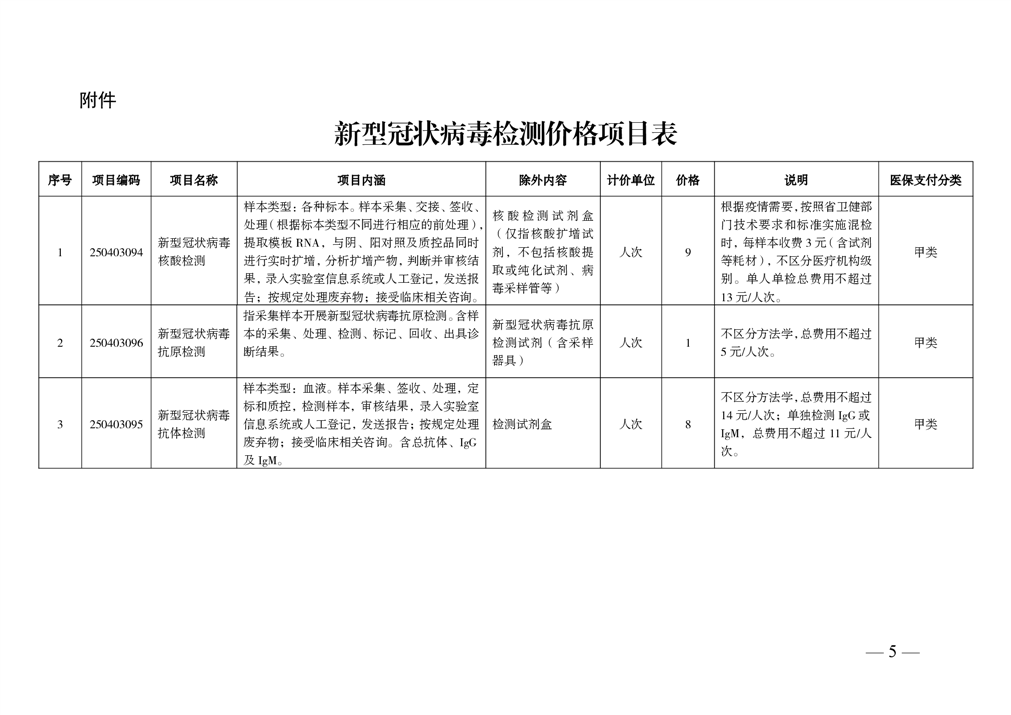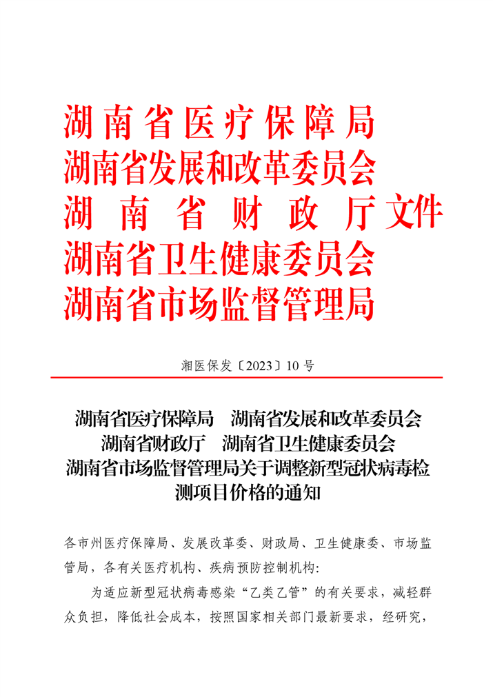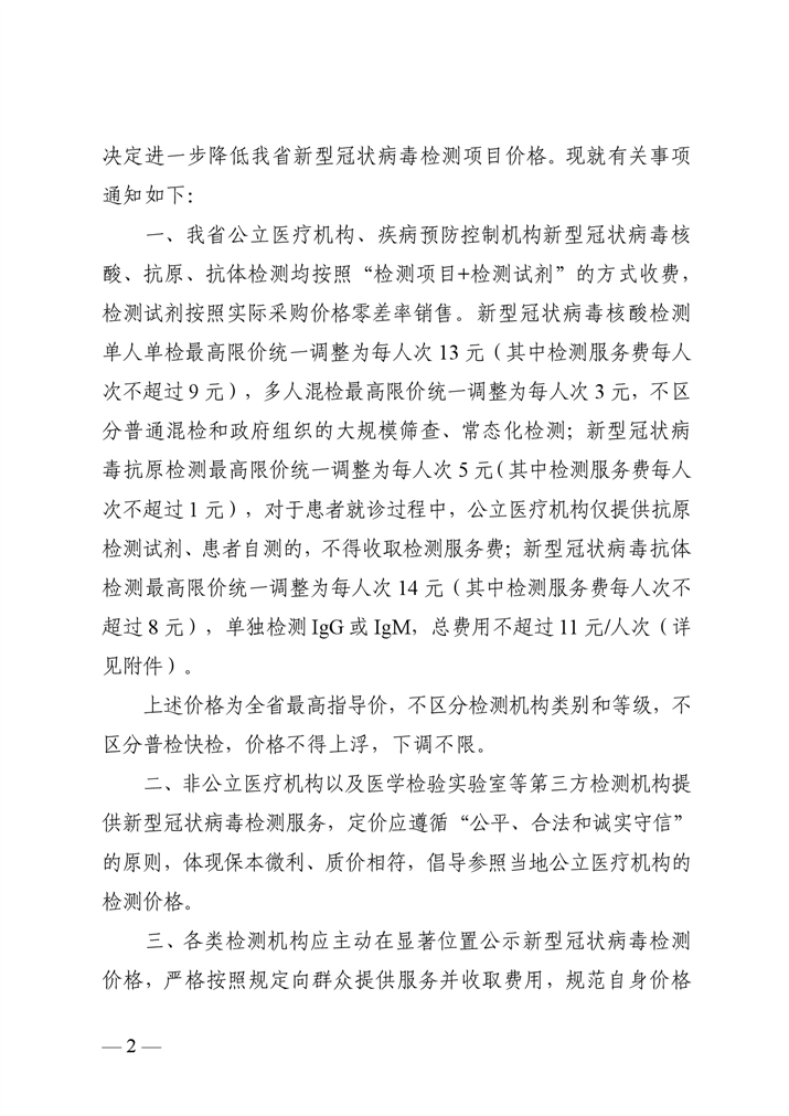 关于调整新型冠状病毒检测项目价格的通知