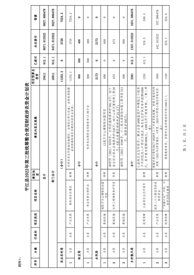 平财农指〔2022〕03号 关于下达2022年度第三统筹整合使用财政涉农项目资金计划的通知