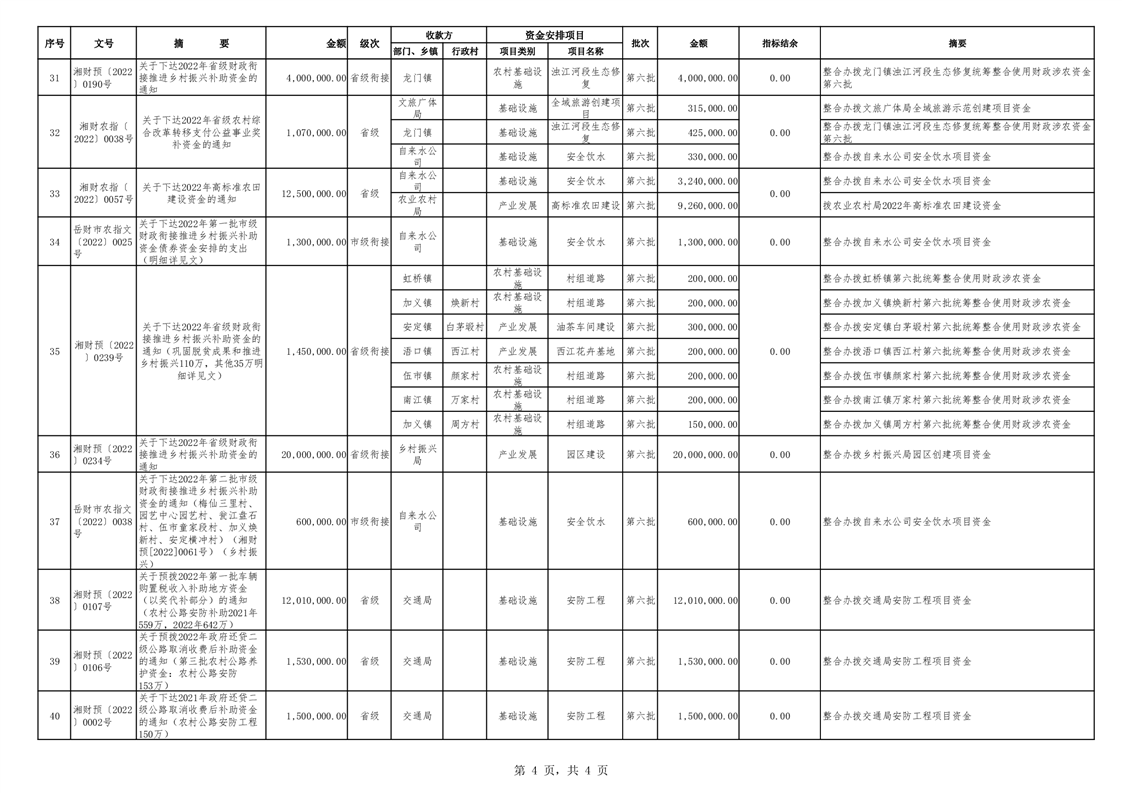 平财农指〔2022〕06号 关于下达2022年度第六批统筹整合使用财政涉农项目资金计划的通知