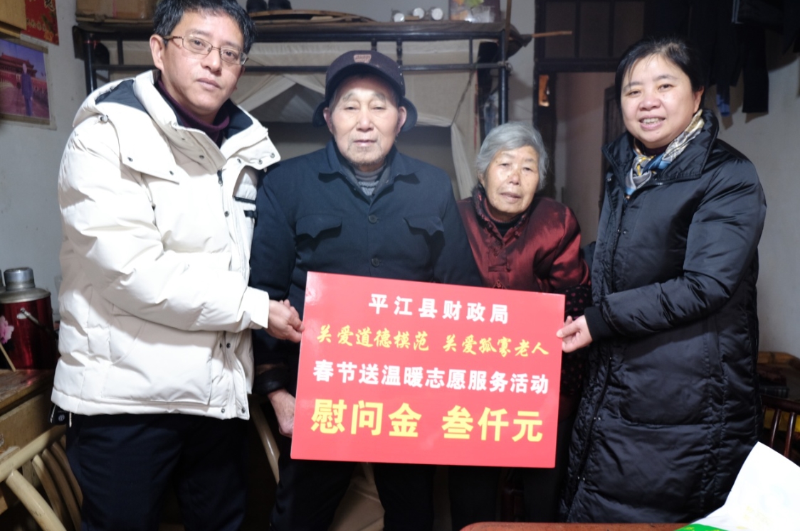 1月17日,县财政局党组成员、机关党委副书记易丽带领机关第二支部党员志愿者到加义镇,走访慰问县第五届“孝老爱亲”道德模范钟旦元,并为他送去了新春祝福和亲切关怀。