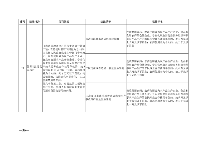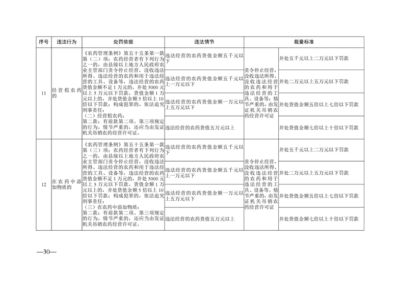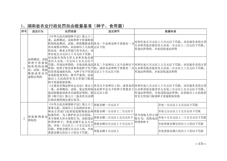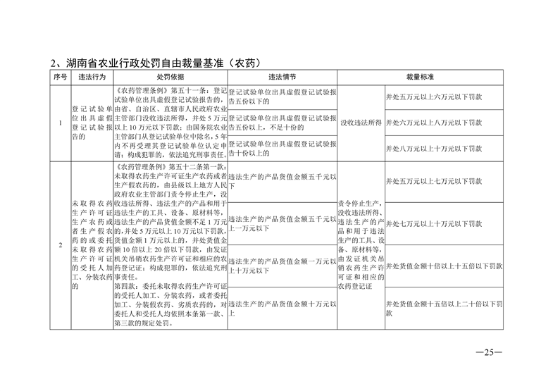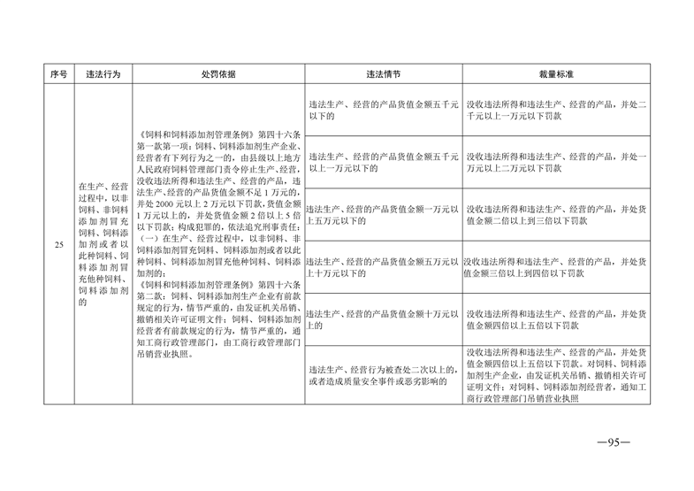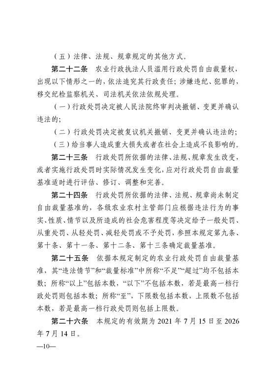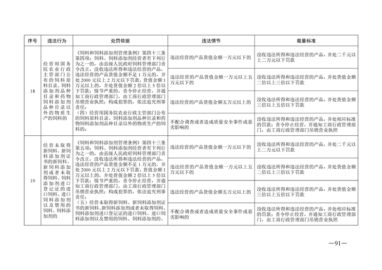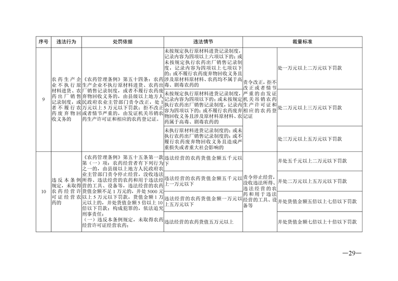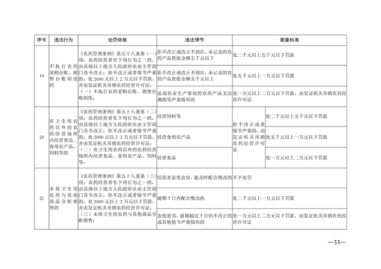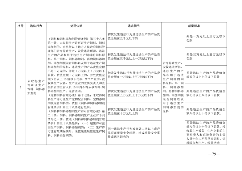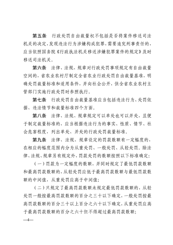 农业行政处罚自由裁量权适用规定和行政裁量权基准
