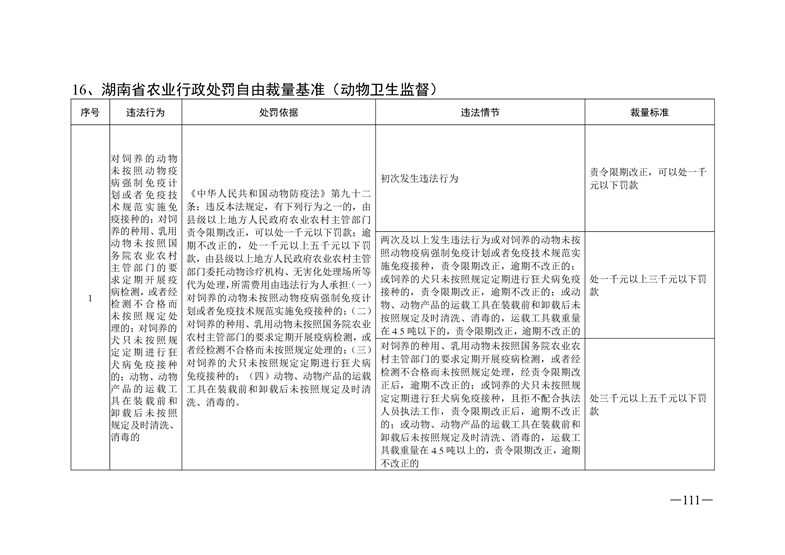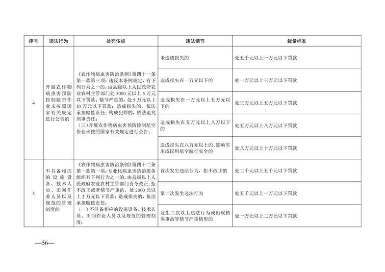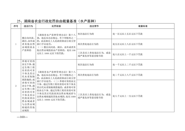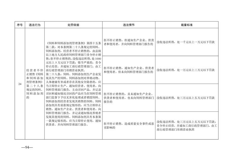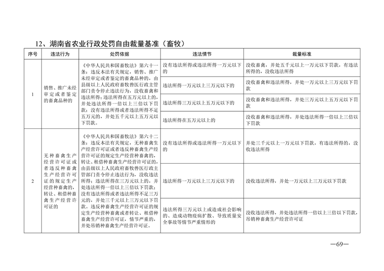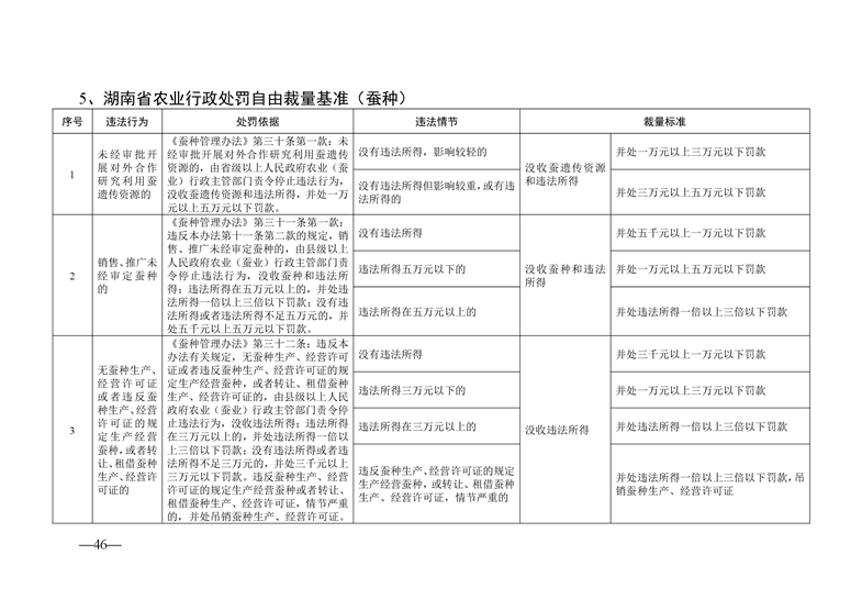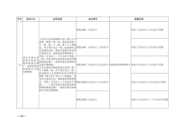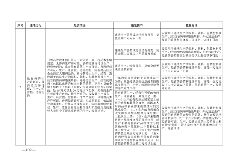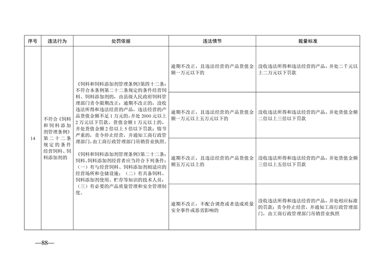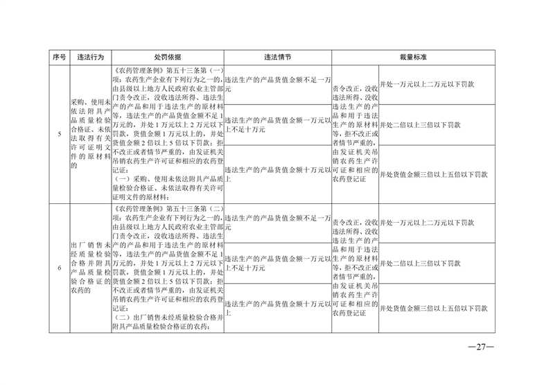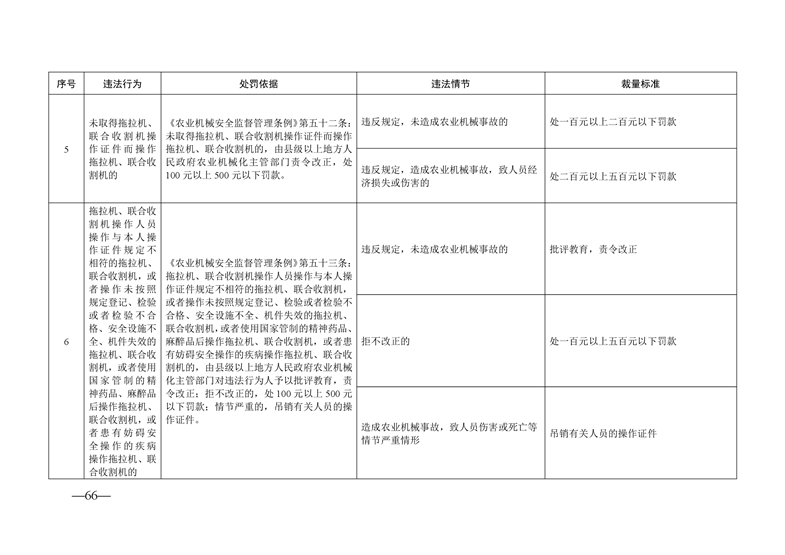 农业行政处罚自由裁量权适用规定和行政裁量权基准