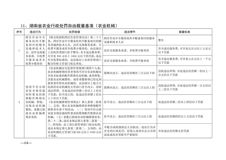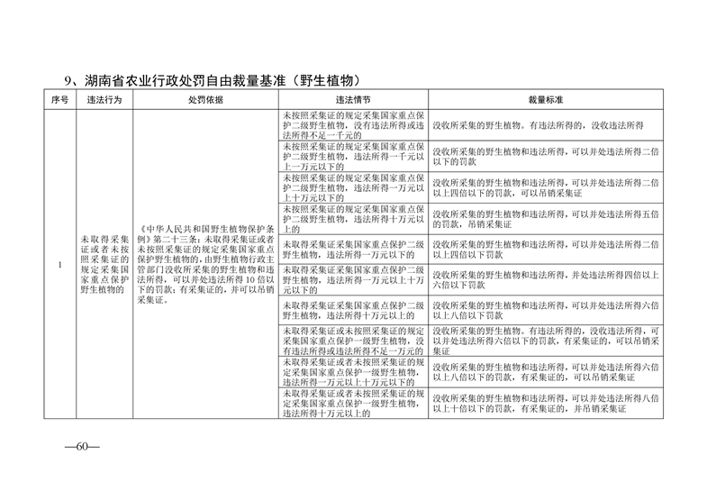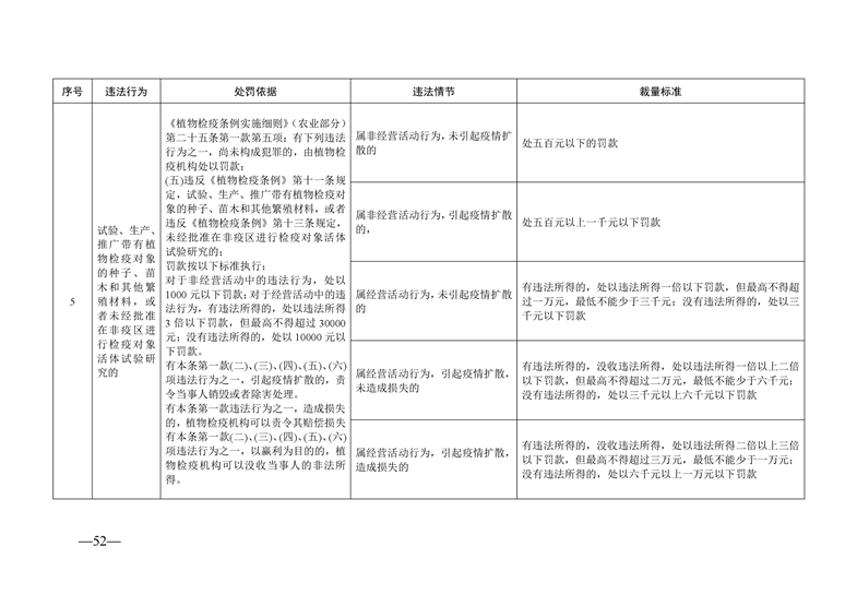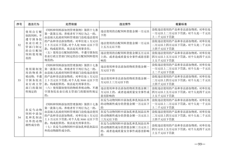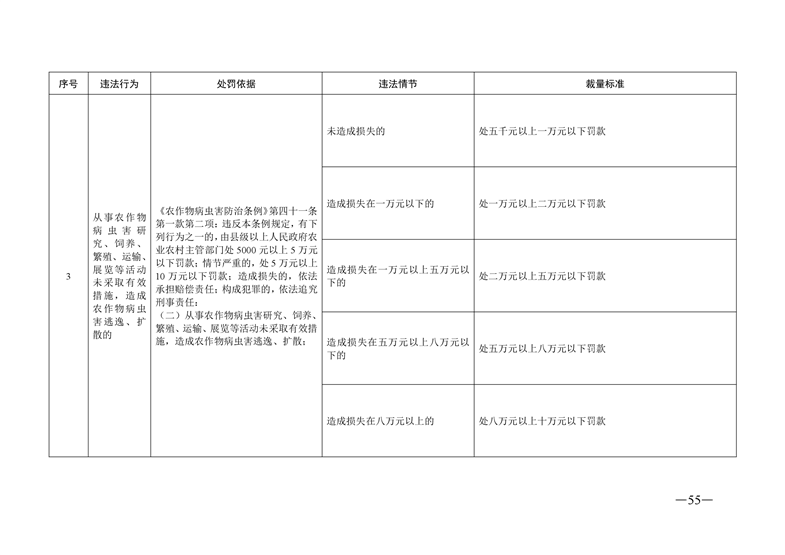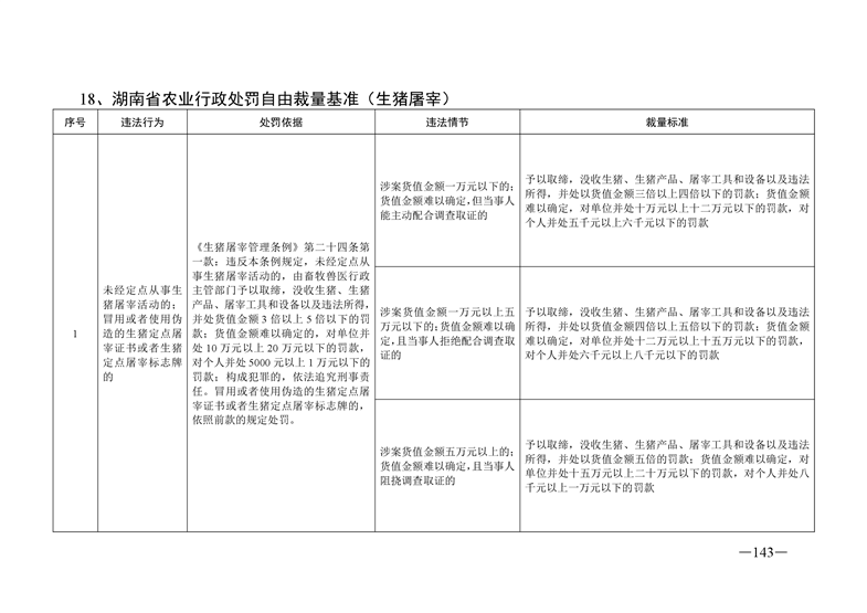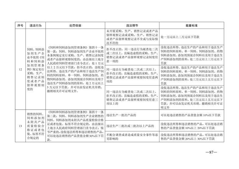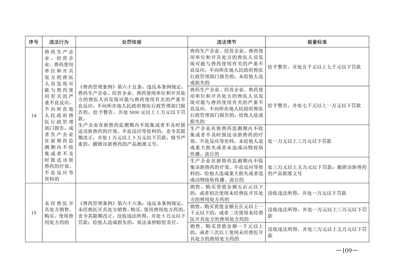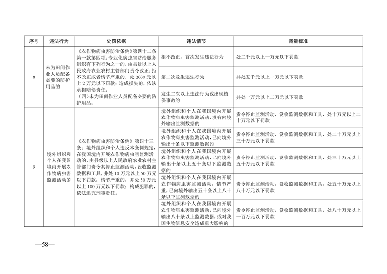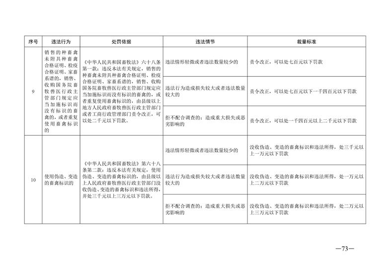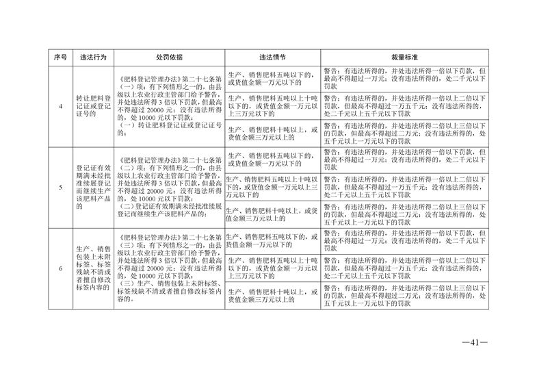 农业行政处罚自由裁量权适用规定和行政裁量权基准