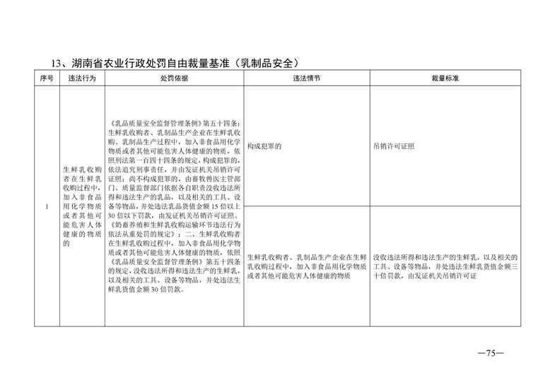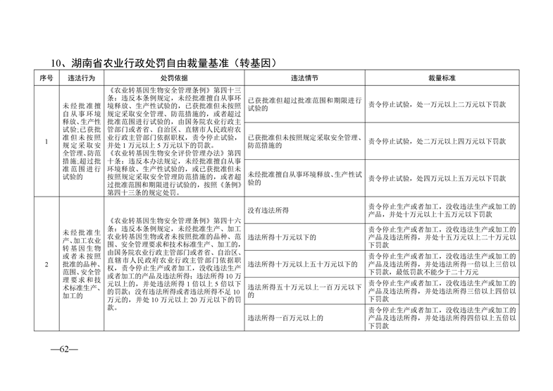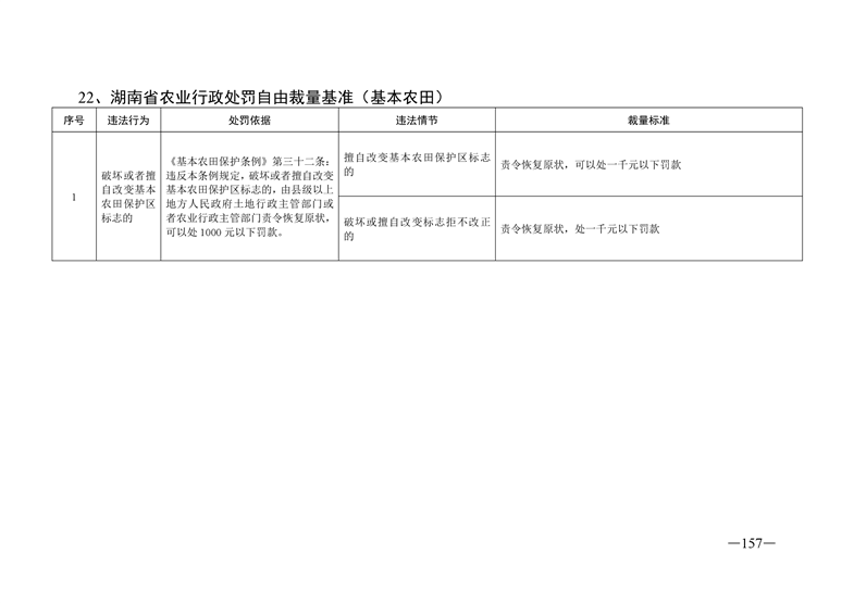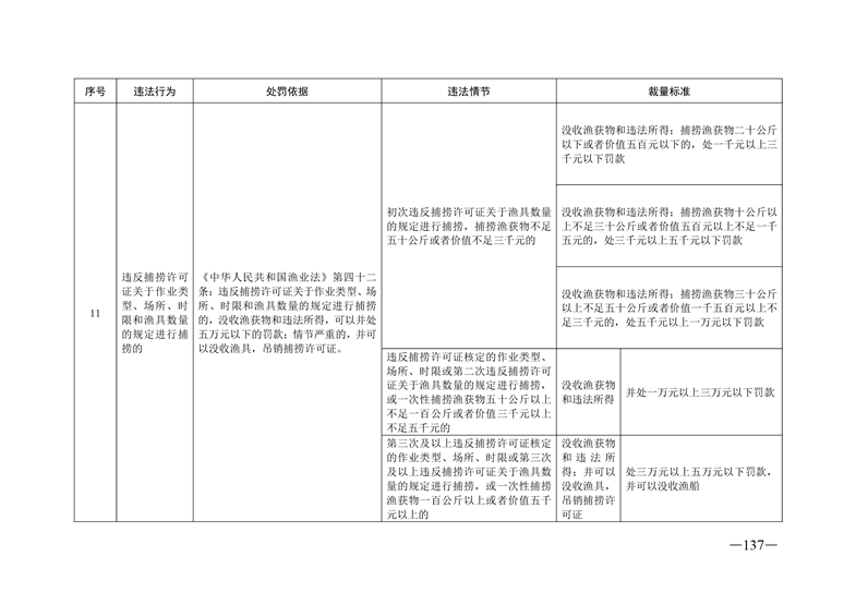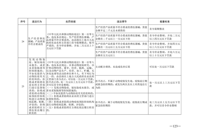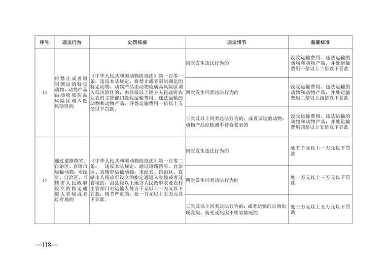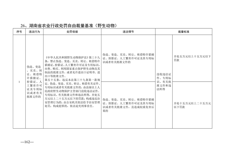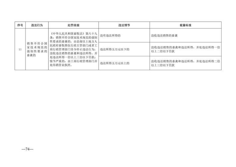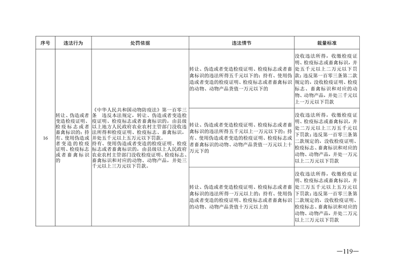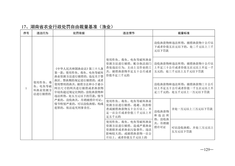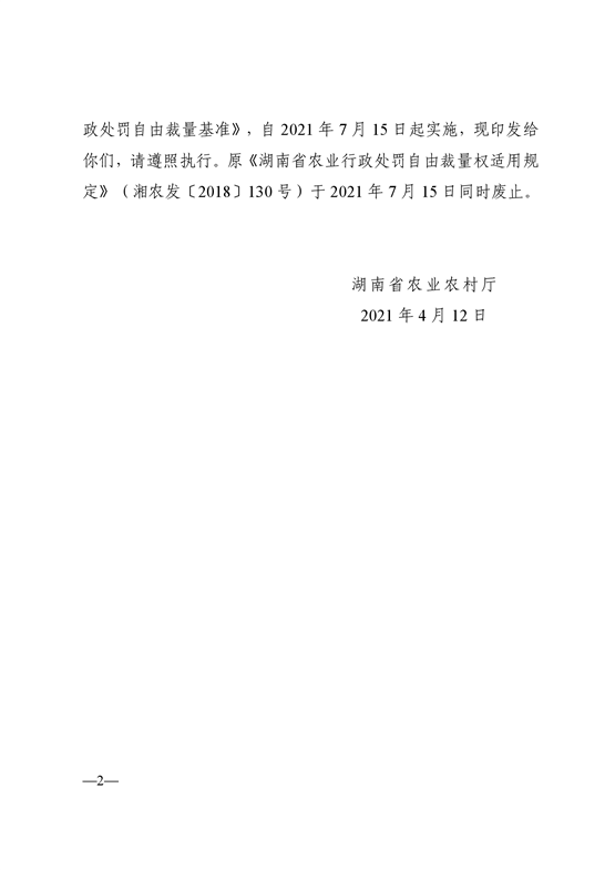 农业行政处罚自由裁量权适用规定和行政裁量权基准
