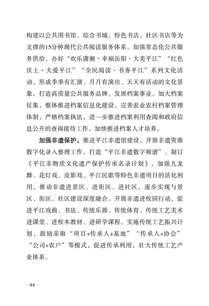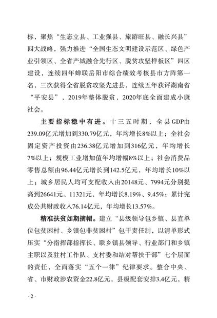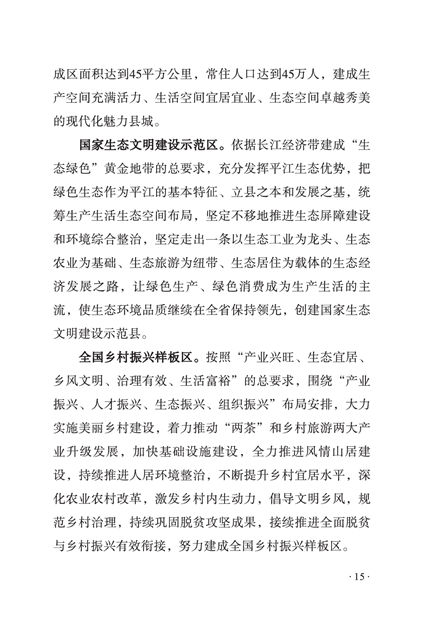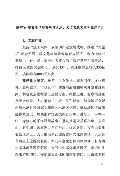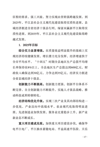 平江县国民经济和社会发展第十四个五年规划和二〇三五年远景目标纲要
