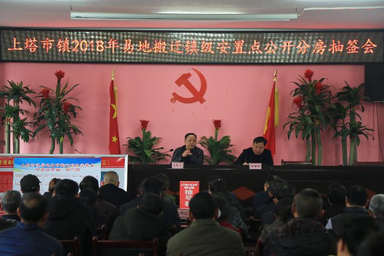 12月7日,上塔市镇2018年镇级安置点分房抽签仪式在镇大会议室举行。仪式由镇党委副书记胡雄辉主持,镇党委书记刘长江出席并发表讲话。