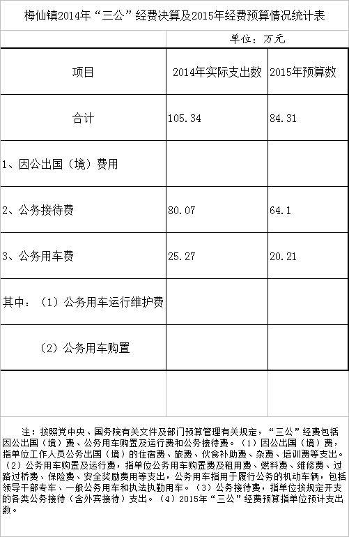 平江县梅仙镇2014年三公经费及2015年经费预算公示