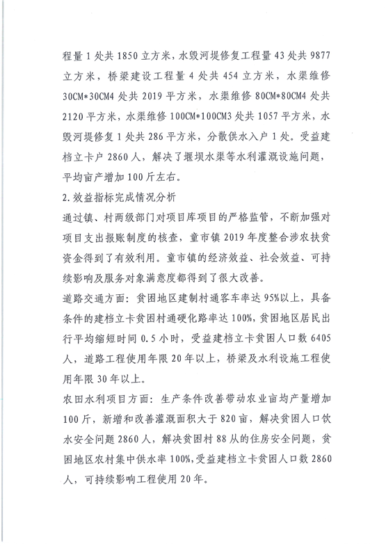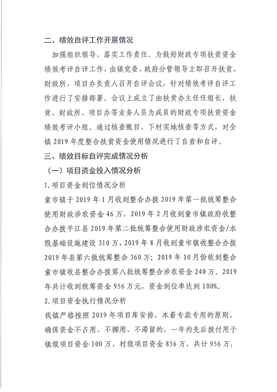童市镇2019年财政扶贫资金绩效自主总结报告