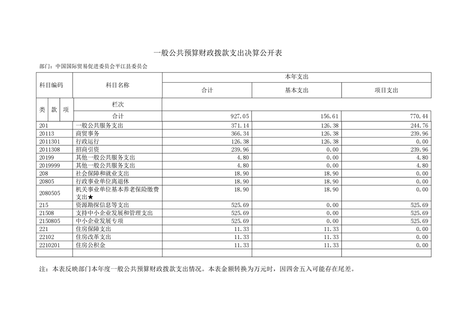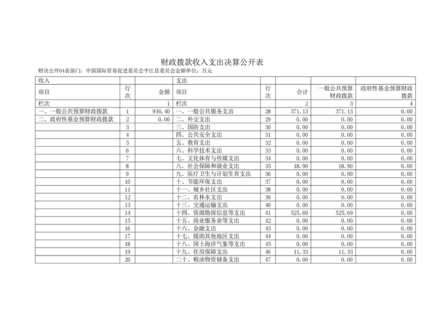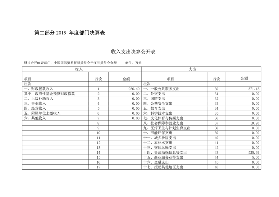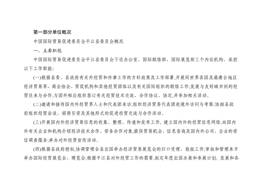 中国国际贸易促进委员会平江县委员会2019年部门决算说明