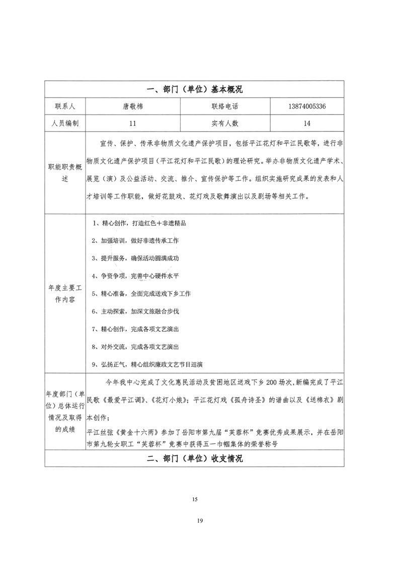 平江县非物质文化遗产保护和传承中心2022年部门决算公开