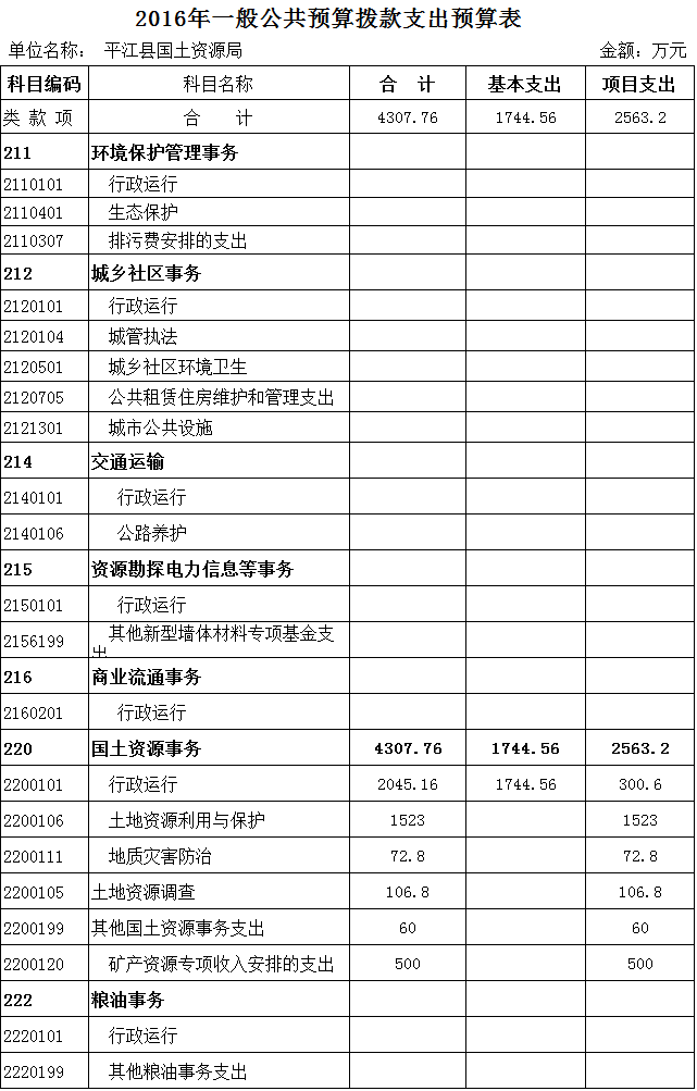 三阳乡矿山巡查、打非治违工作经费100万元;长石整治经费150万元;三阳乡矿区管理协调经费250万;地质灾害应急分队(含群测群防员补助)72.8万元;档案信息化建设60万;探矿权、采矿权价款收入征收经费75万元;矿产资源补偿费征收经费15元;开发新增耕地用于占补平衡665万元;国土部门集体土地确权登记发证106.8万元;非税收入执收成本业务费210.6万元;耕地开垦费征收经费90万元;灾毁耕地复垦资金768万元。