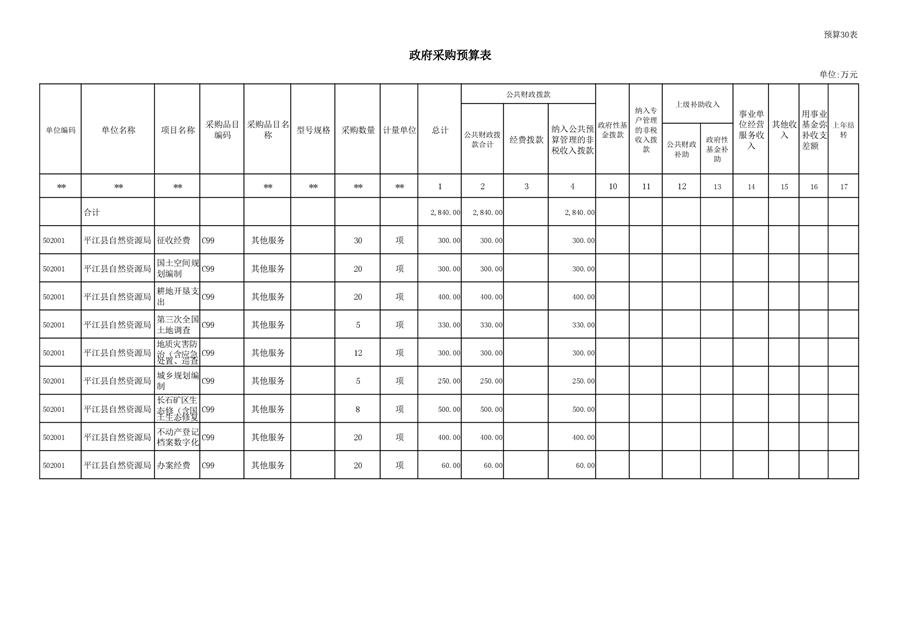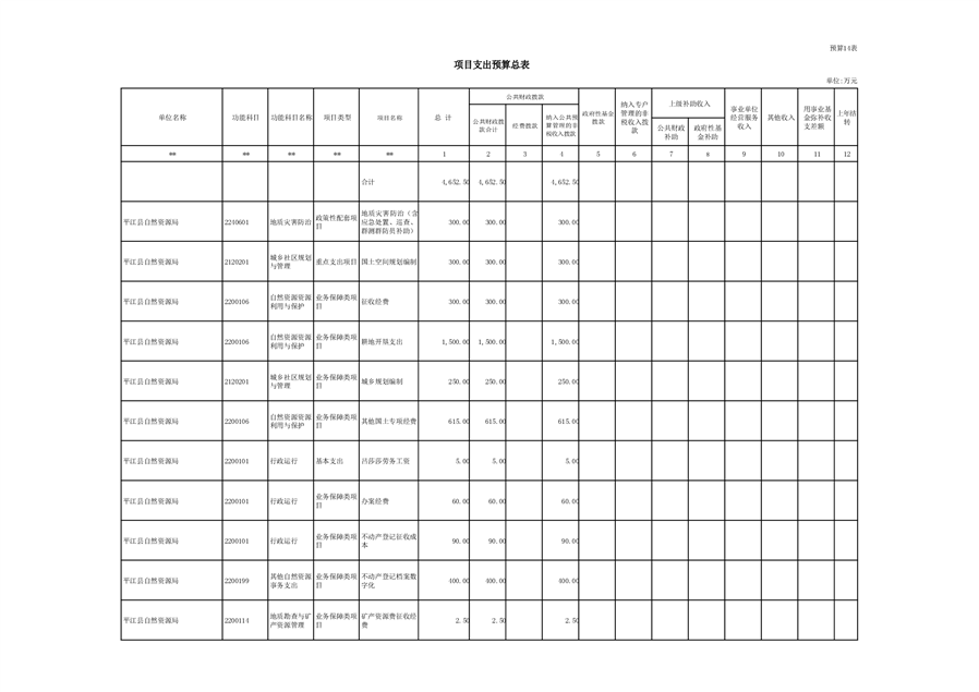 自然资源局2021年预算网上公示