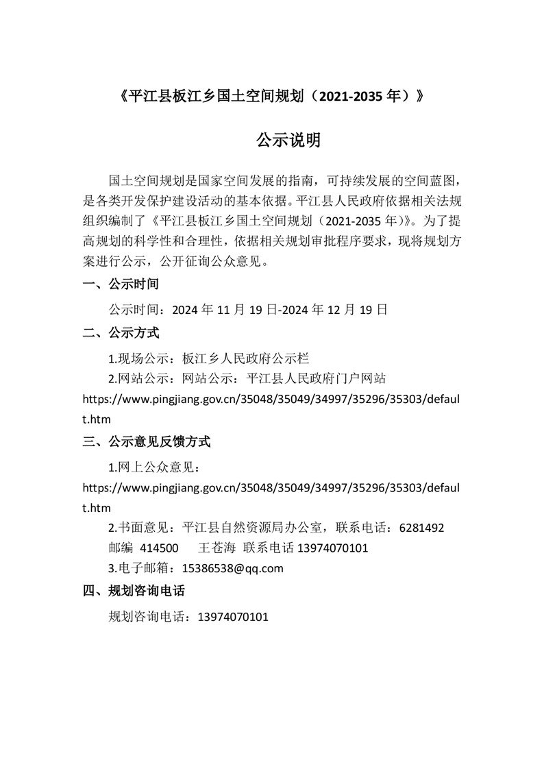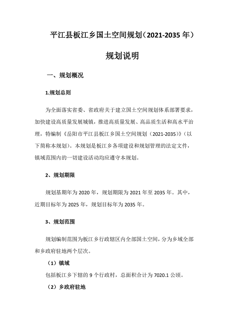 平江县板江乡国土空间规划(2021-2035年)公示说明