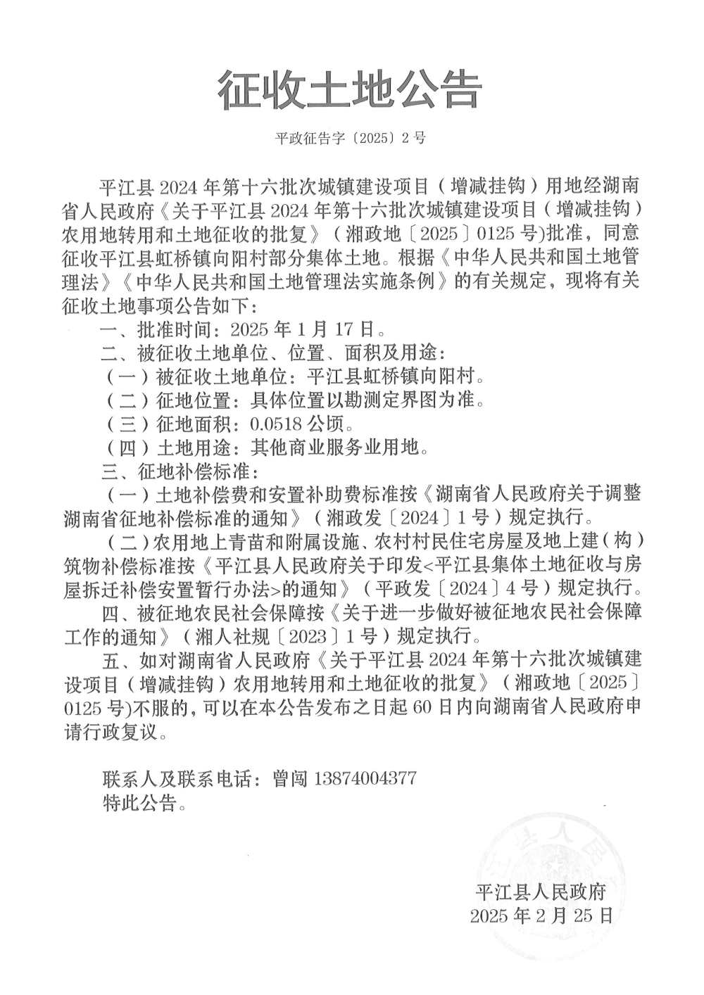 关于2024年第十六批次城镇建设项目(增减挂钩)征收土地公告