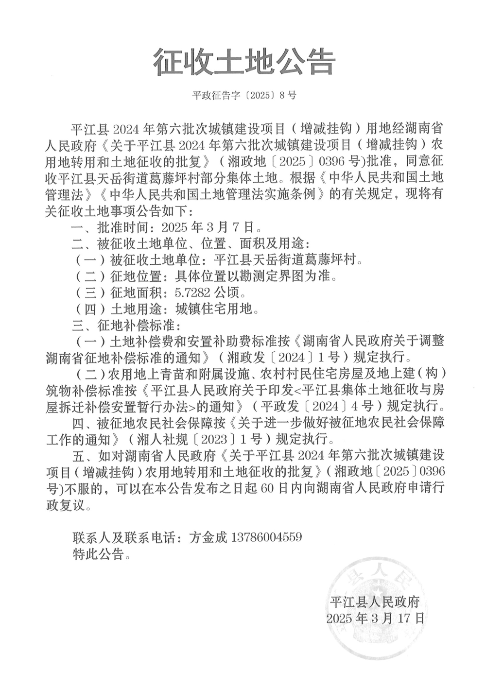 关于2024年第六批次城镇建设项目(增减挂钩)征收土地公告