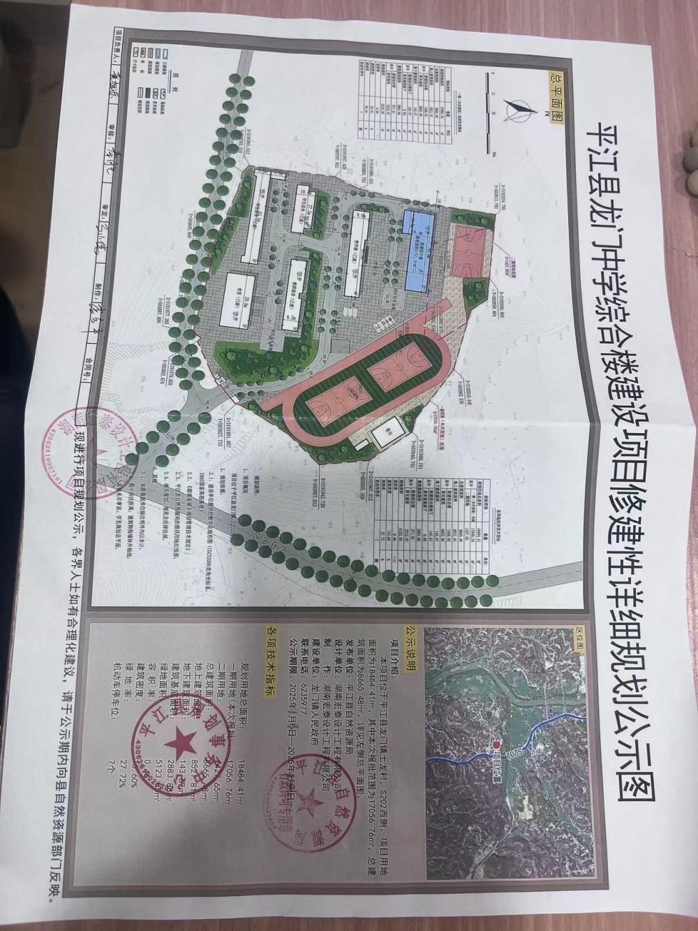 今有平江县龙门中学向我局提交审查《平江县龙门中学综合楼建设项目修建性详细规划公示》的申请。现根据《中华人民共和国行政许可法》和《中华人民共和国城乡规划法》的规定,对该项目规划依法予以公示。
