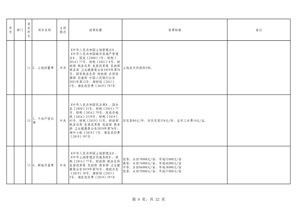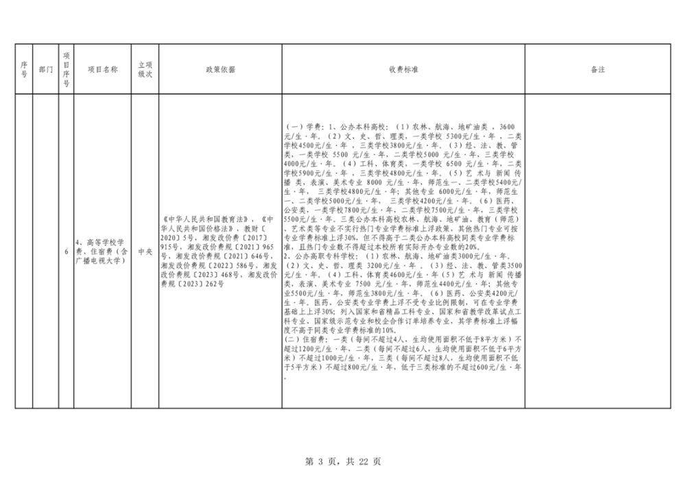 2023年湖南省行政事业性收费目录清单