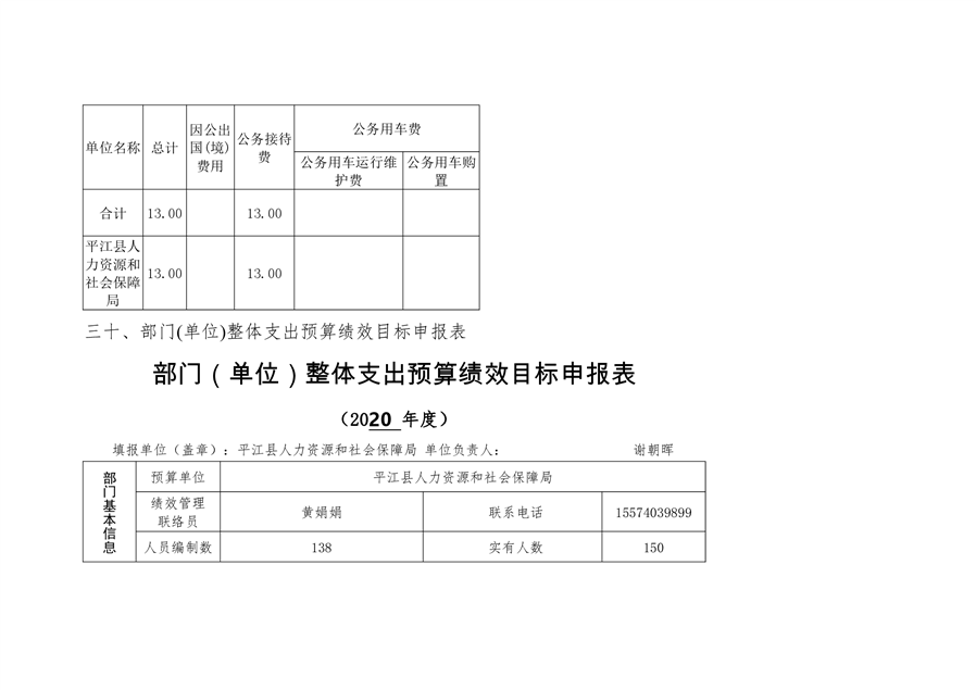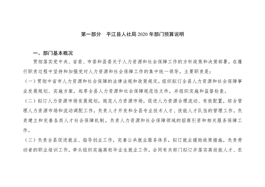 平江县人力资源和社会保障局2020年度部门预算编报说明