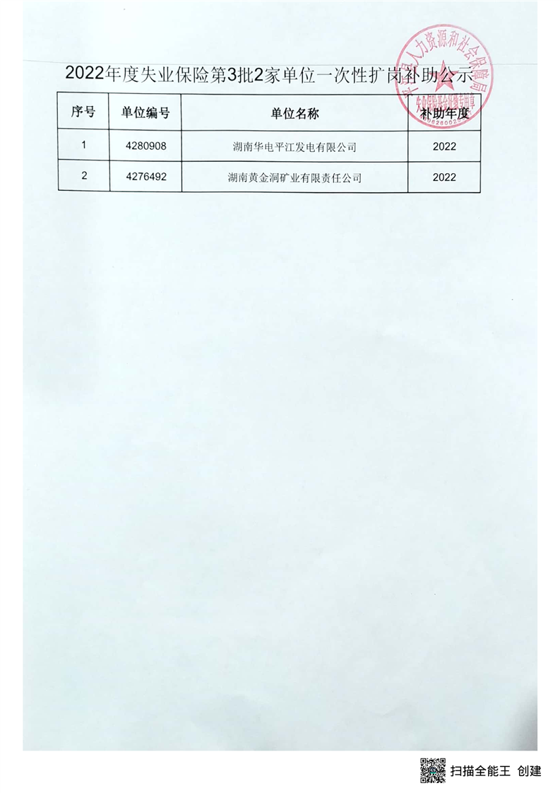2022年度失业保险第3批2家单位一次性扩岗补助公示