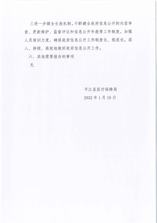 平江县医疗保障局2021年政府信息公开工作年度报告