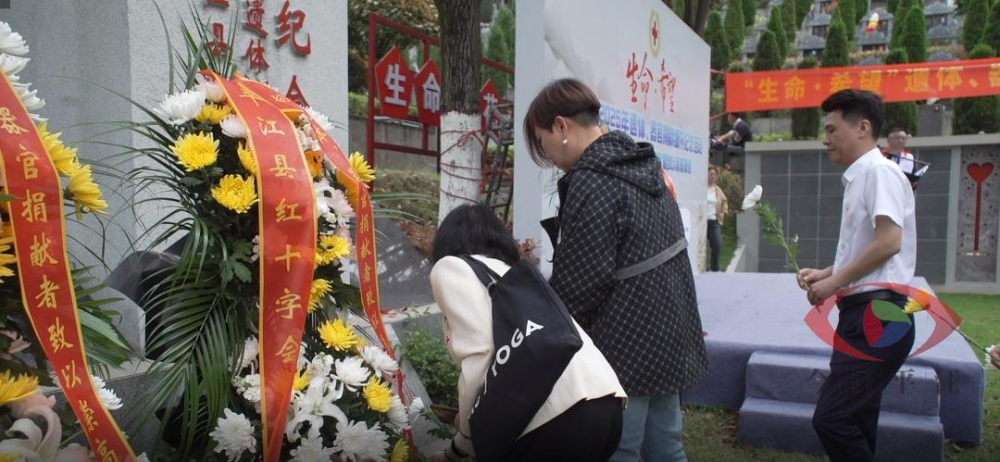 活动现场,全体人员向人体器官(遗体)捐献者纪念碑集体默哀并敬献鲜花,礼仪人员引导家属手持骨灰盒进入博爱园安放区,现场奏响《安魂曲》,县红十字会志愿者代表饱含敬意朗诵了《生命的礼物》,县红十字会会长李三军代表县红十字会接受博爱园捐赠并颁发捐赠证书。随后,参与活动的领导纷纷上前整理花篮和缎带。