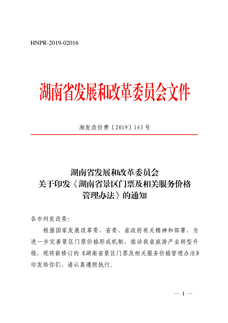关于印发《湖南省景区门票及相关服务价格管理办法》的通知