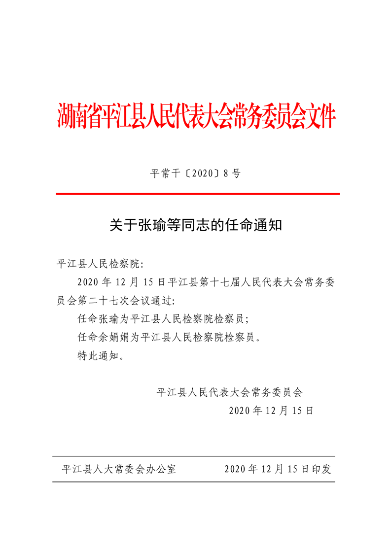 关于张瑜等同志的任命通知