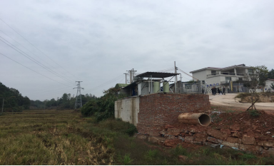 楚八戒公司位于平江县城关镇三望冲村,是法定代表人游金(死者)利用其岳父曾波连别墅后面的旧柴棚改造、逐年扩大而来。别墅左侧为办公区,门口乡间小路直通106国道,厂区前方、左侧为稻田,后方、右侧为山林,废水生化处理系统建在厂区大门口靠左侧稻田的路基边(见下图1)。