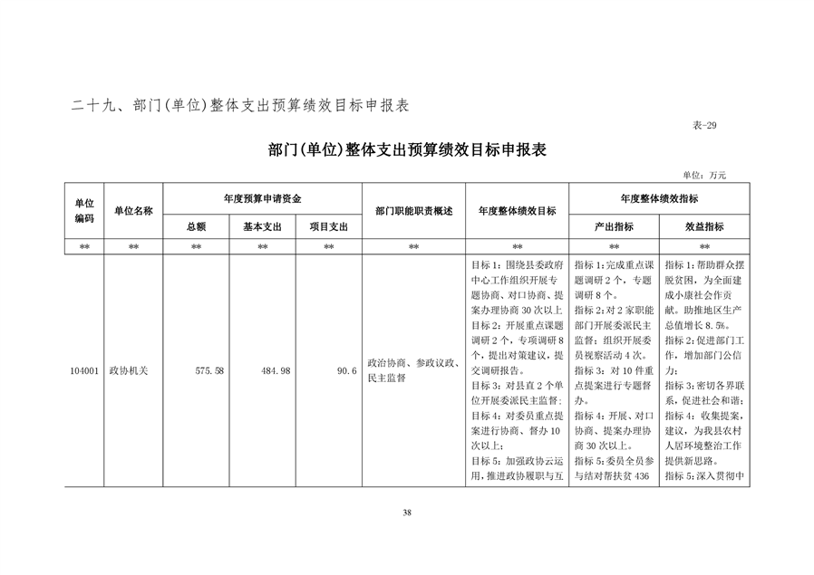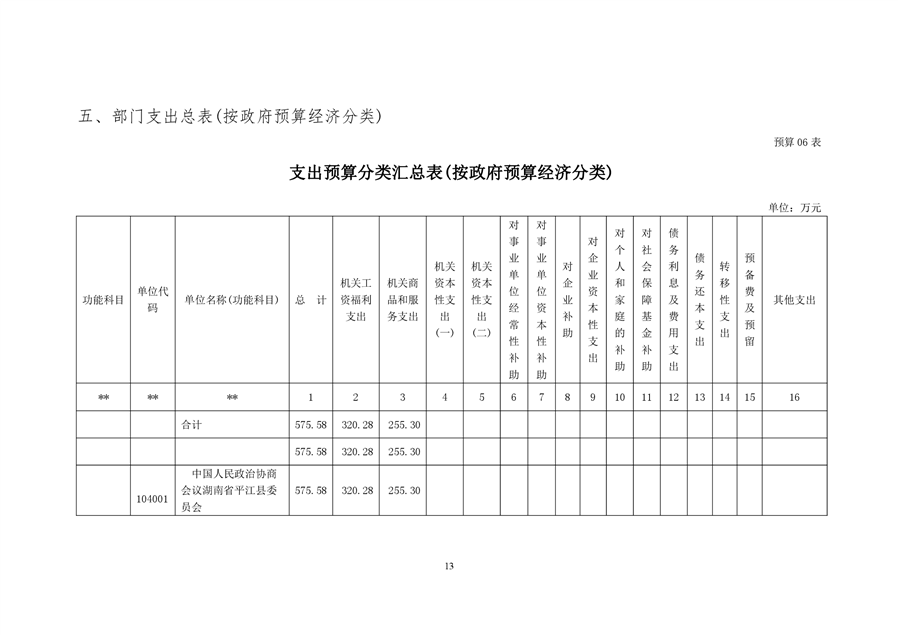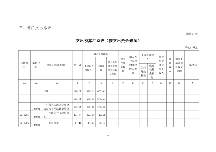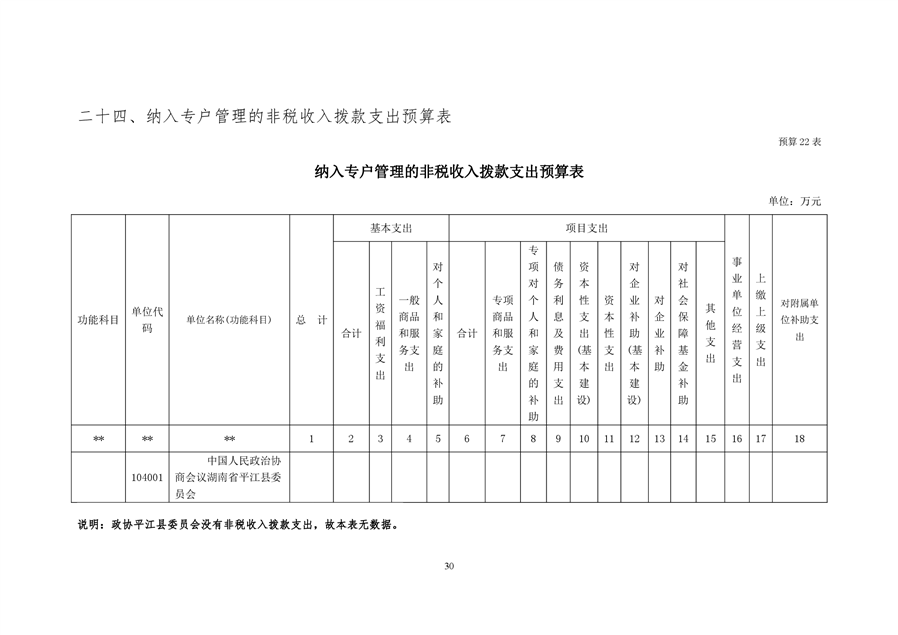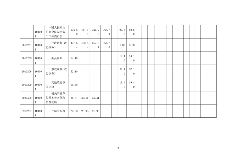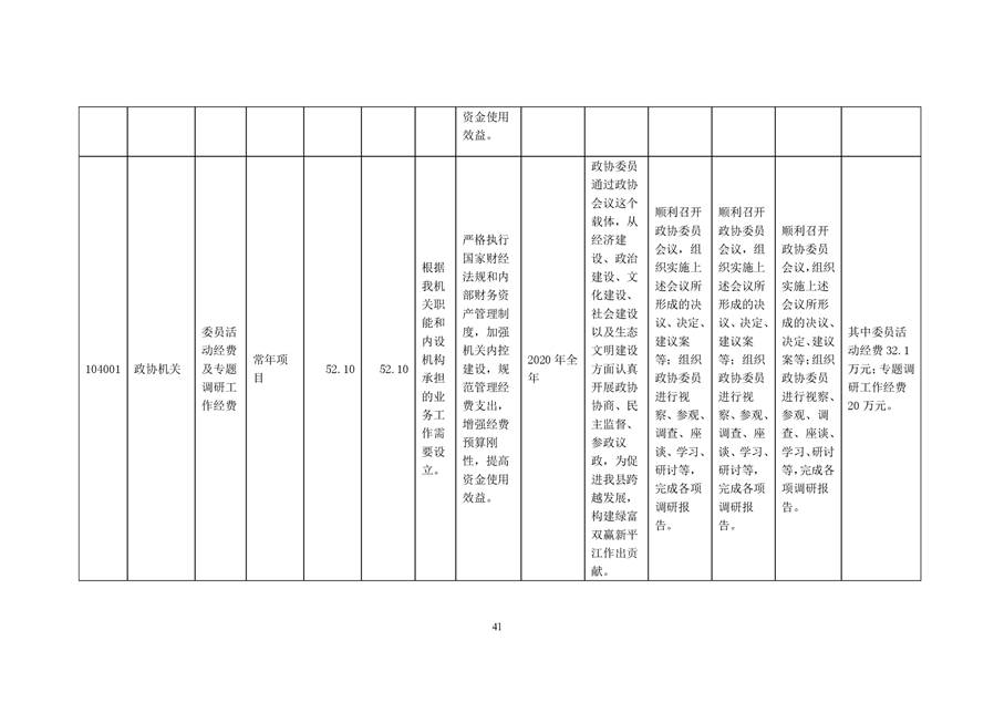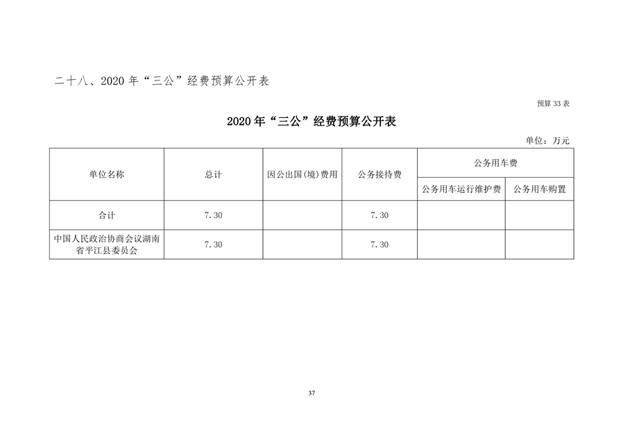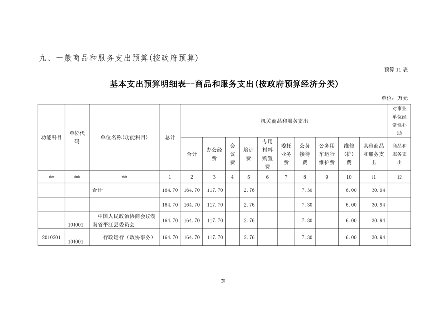 政协平江县委员会2020年部门预算
