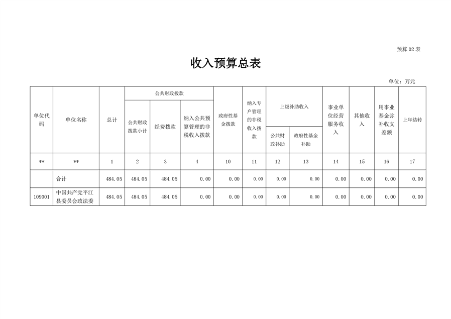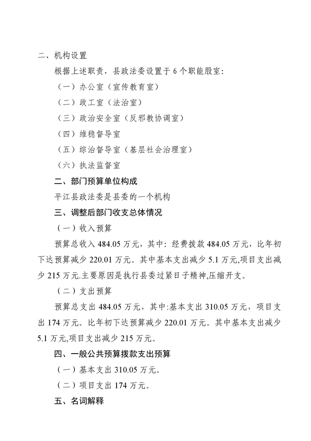 平江县委政法委2020年部门预算调整