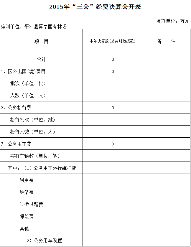 附件6:平江县幕阜国有林场2015年度三公经费公开