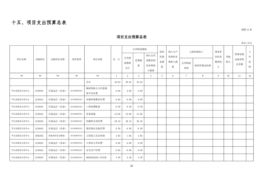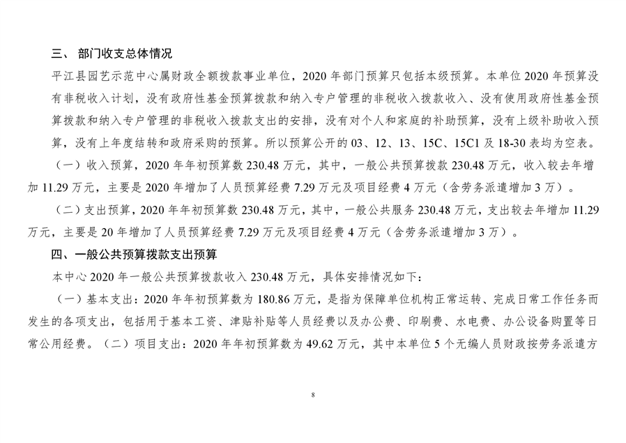 平江县园艺示范中心2020年部门预算编报说明