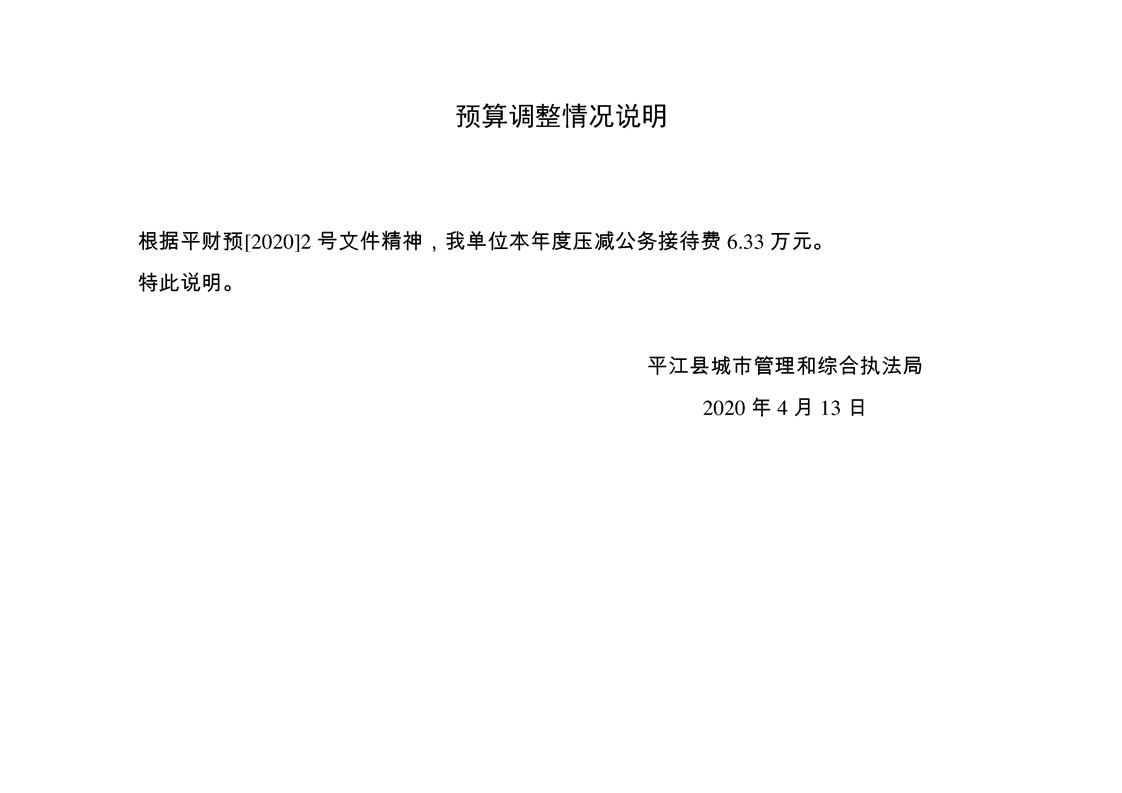平江县城市管理和综合执法局2020年部门预算说明调整后