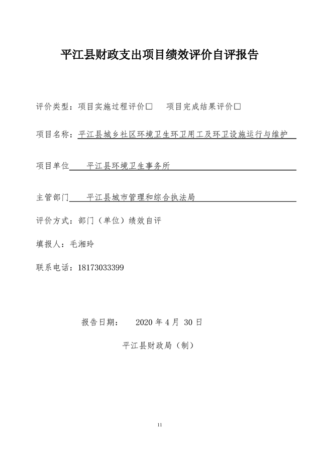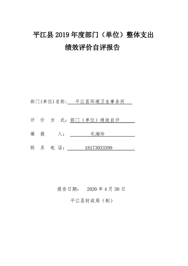 平江县环境卫生事务所2019年度整体支出绩效自评